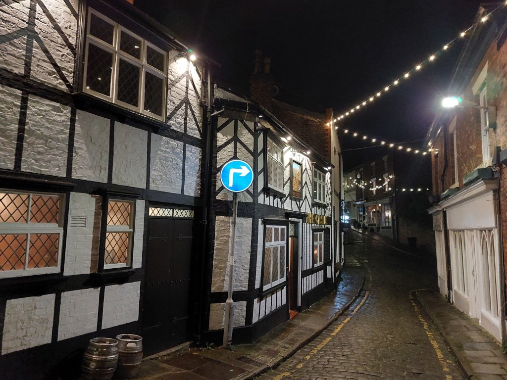 and I’ll admit even a Macclesfield regular like me temporarily forgot the exact spot tucked away in the lanes leading up from the station before I recognised the lovely lane and black and white.