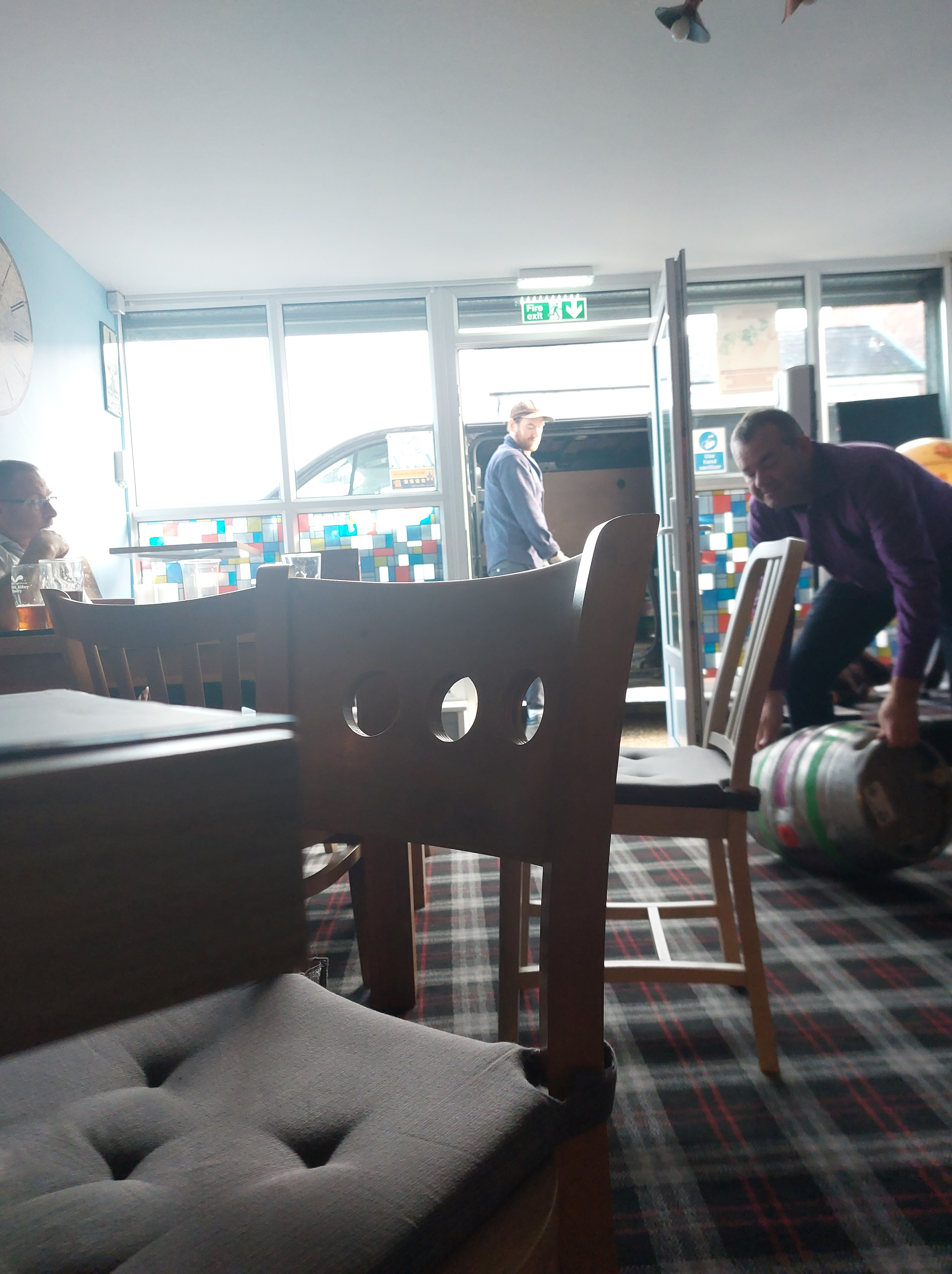 The beer delivery man pulls up outside and the barrels are rolled in.