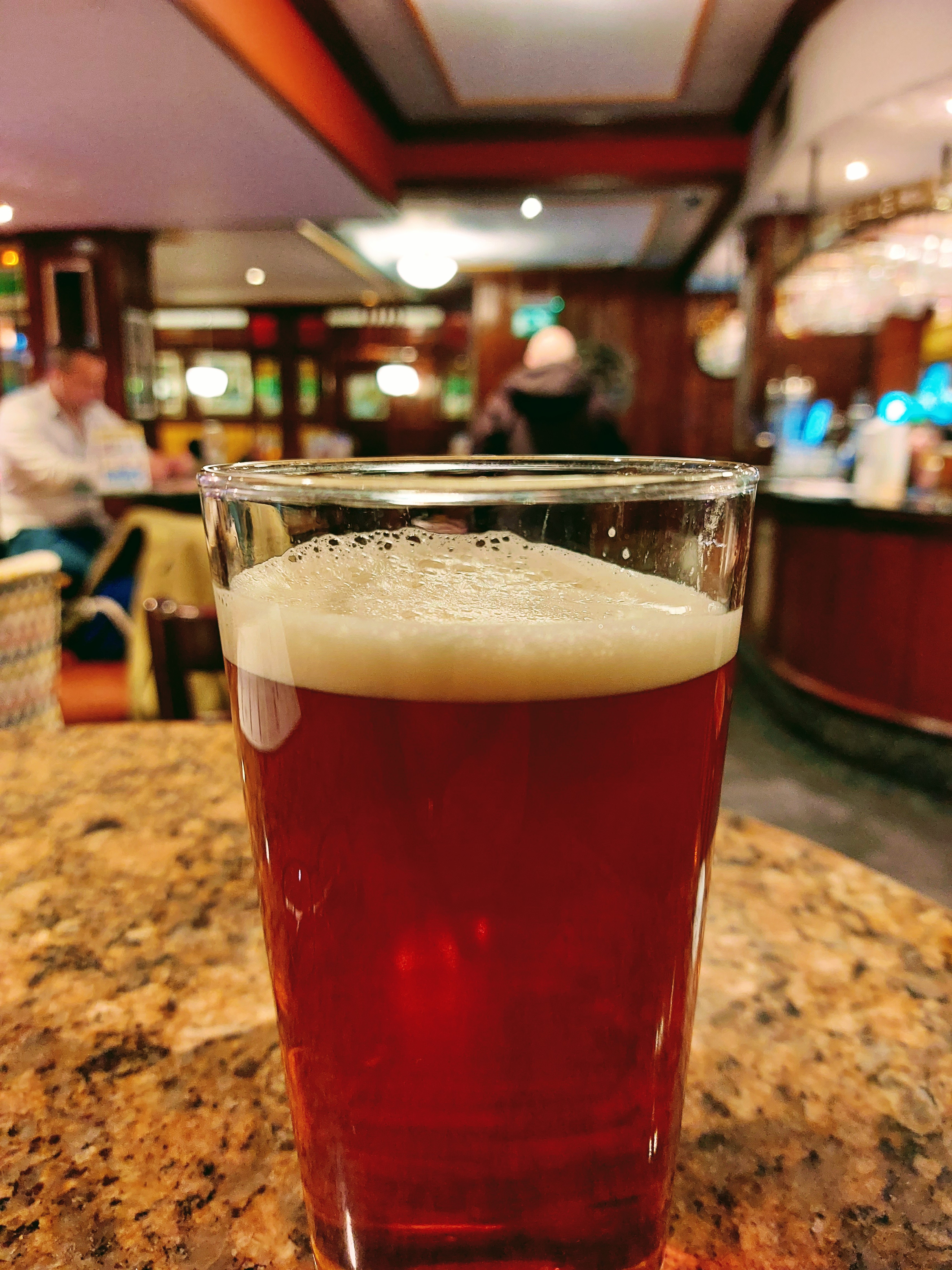 This Spoons is packed with blokes, most of whom are reminiscing about Ireland and about to break into a rendition of ” Fairytale of New York”.