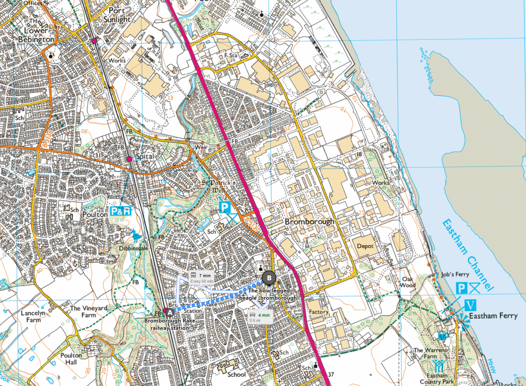 Bromborough (pop. 14,850) has a Travelodge at the foot of the A41 I’ve used a few times when the price dipped below £30, and it’s a decent base for slow trips into Merseyside, but what does it have to tempt the adventurous tourist ?