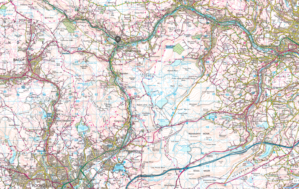 The OS extract for the hills around Todmorden does full justice for one of the great walking and pubbing areas in the world. The views from the M62 across Rishworth Moor are breathtaking, except when fog descends.