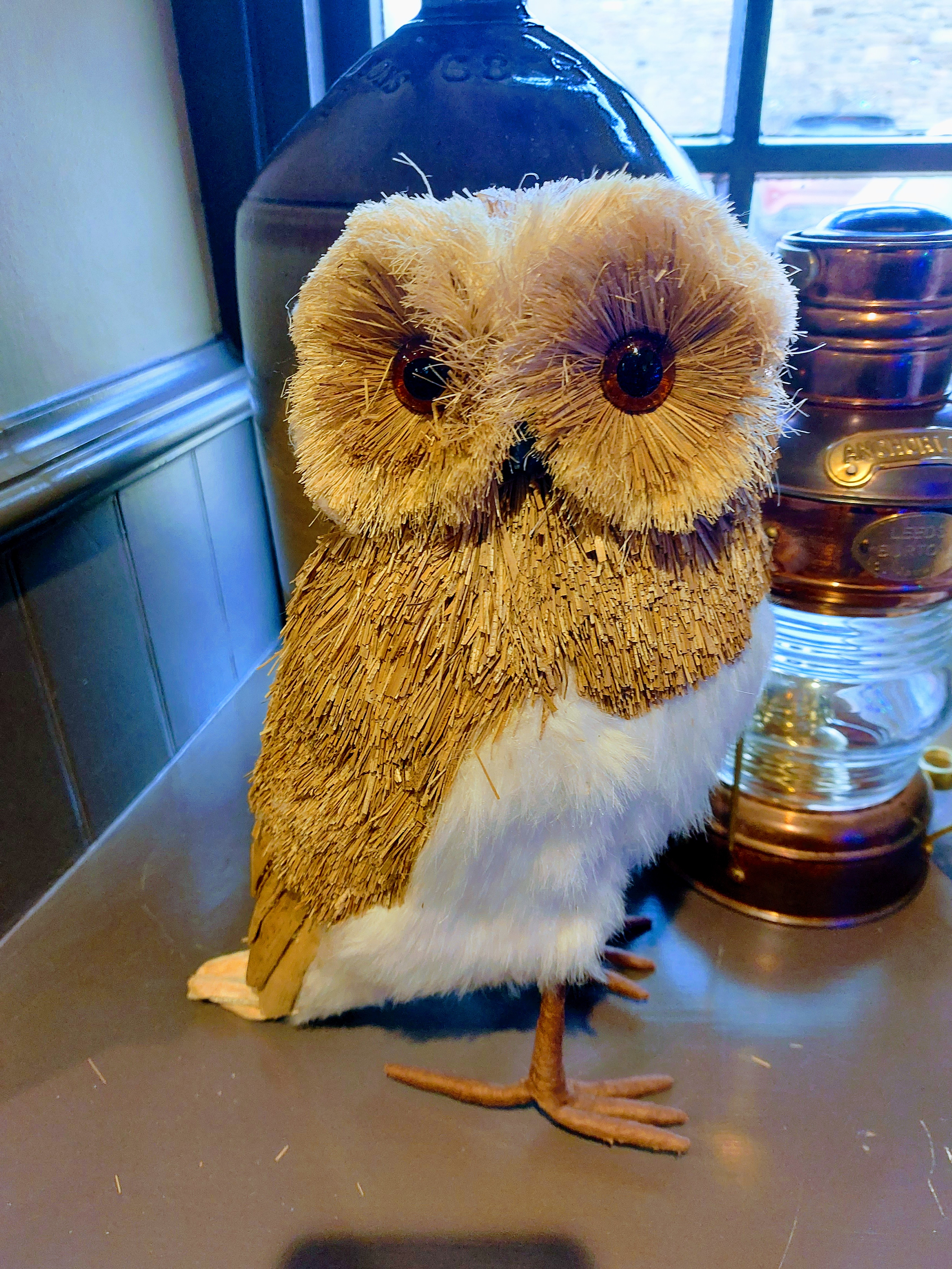 Nothing else to see, everyone else was silently perusing the plastic menu. Except Martin the Owl, cruelly abandoned by BRAPA in favour of a cauliflower.