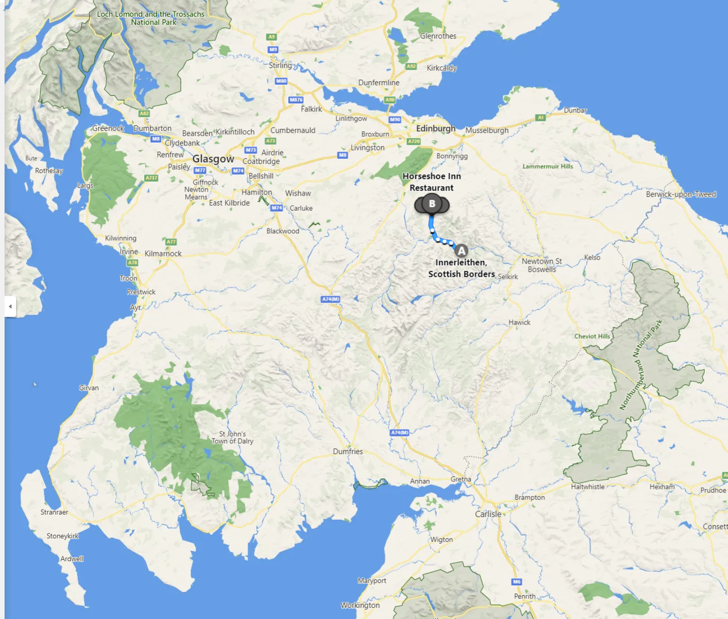 Let’s start in Eddleston, whose only famous feature is the Polish map of Scotland it was too dark to see;