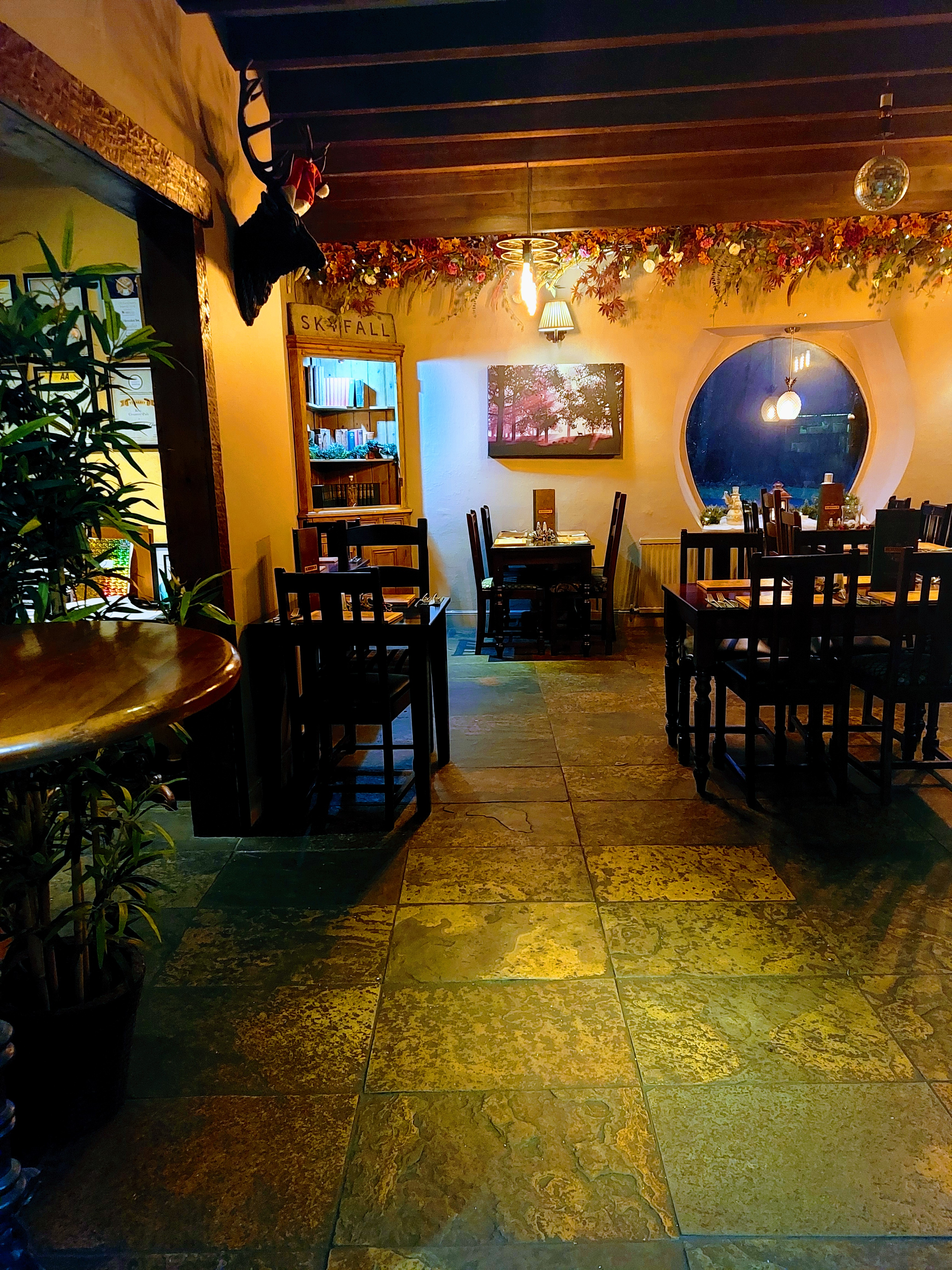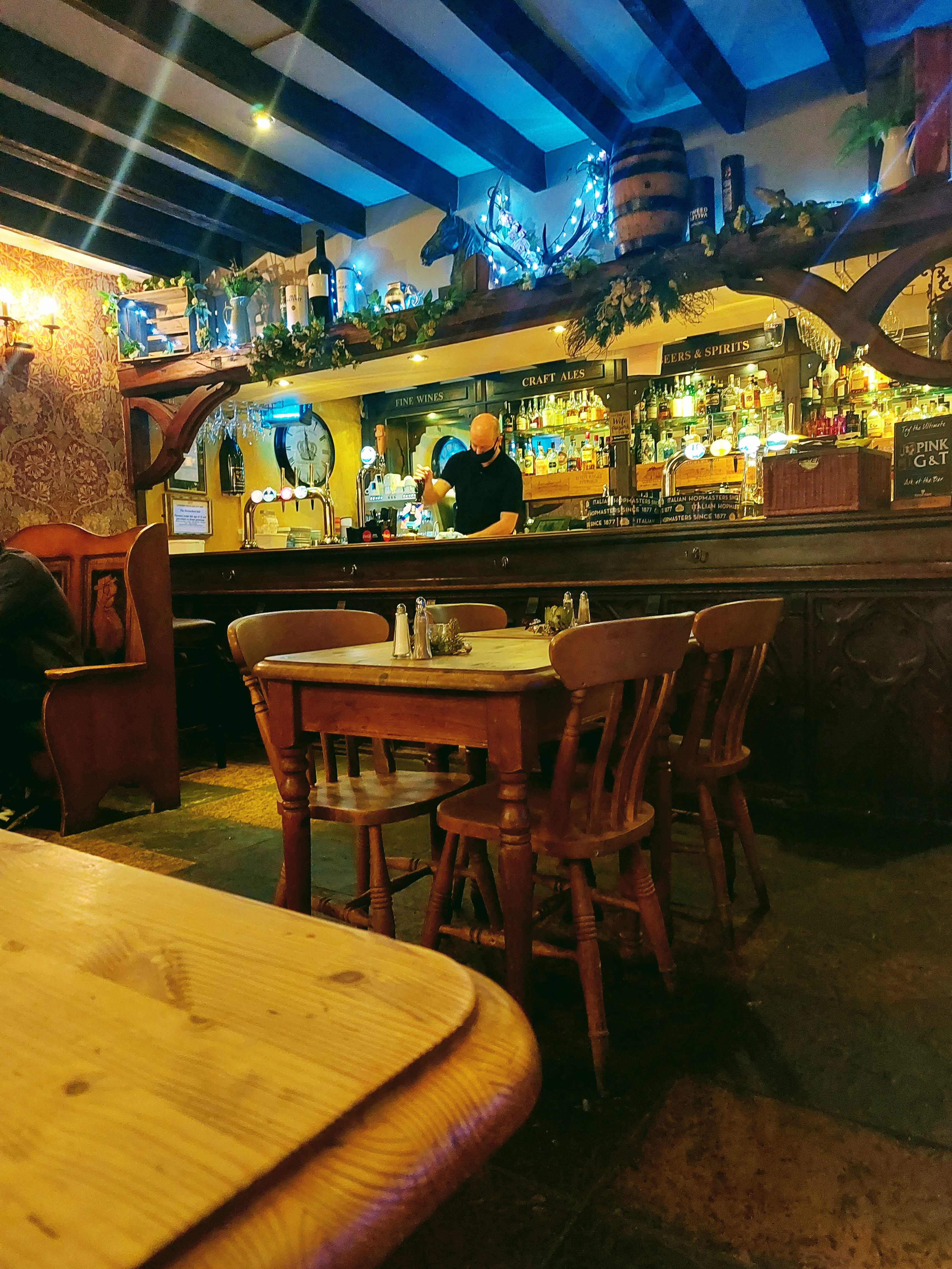 A chap in a uniform ushered me through to the bar, called on someone younger to serve me, and let me choose my own table. Which would have been exciting if they hadn’t all looked like dining tables.