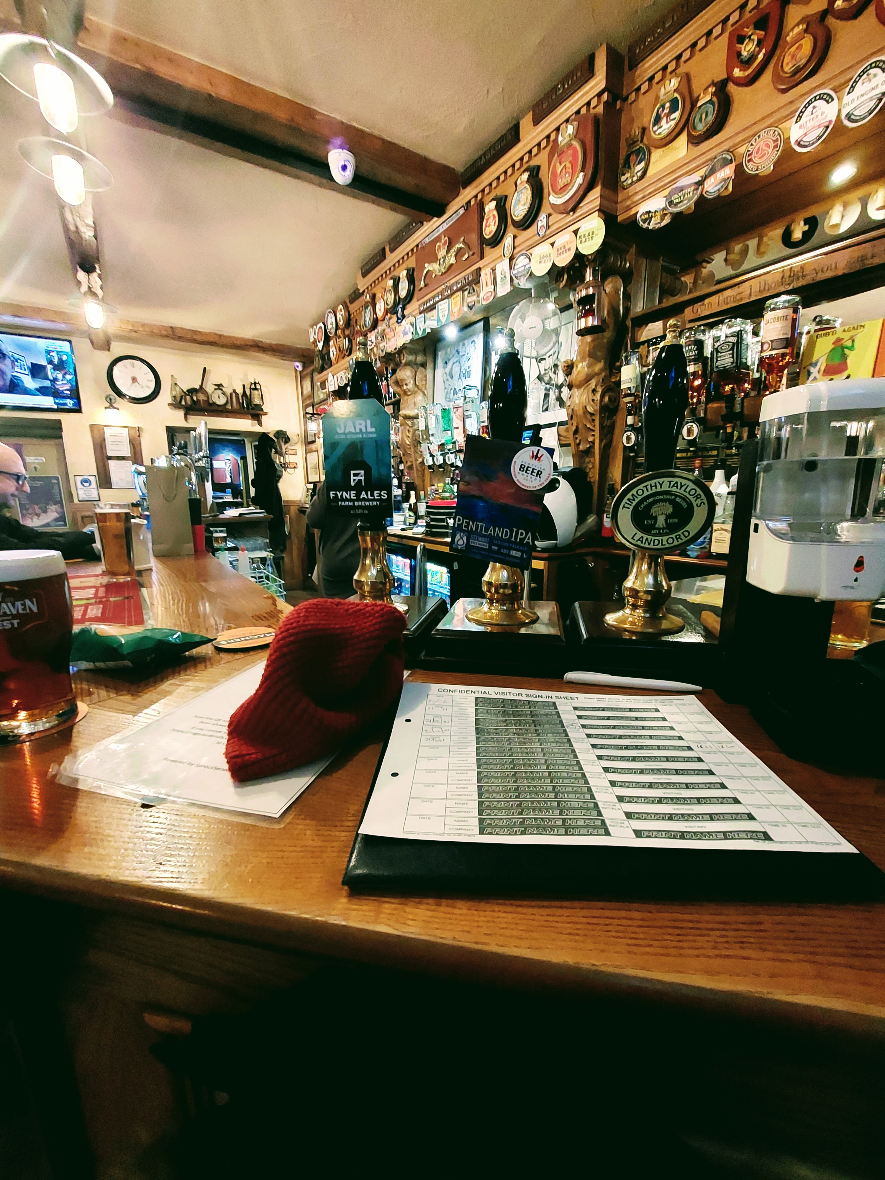 The first pub so far where I’m asked to sign in, surprisingly, but also the most pubby with blokes at the bar and a level of swearing (mostly relating to a daft argument around when the sun comes up) that explains why Sam Smiths never got a foothold here.