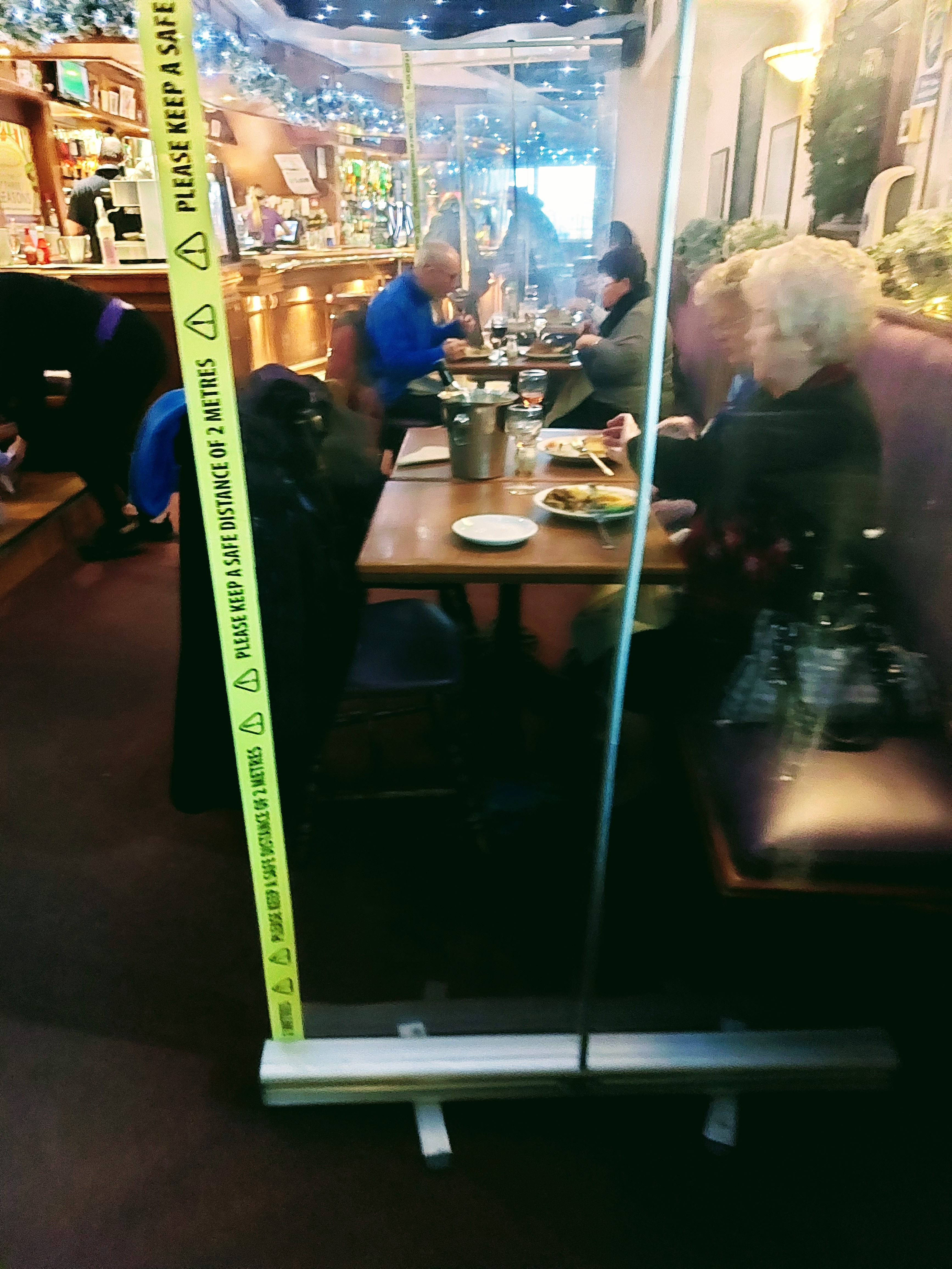 As you’ll note from the flashy mobility scooter, still a bar for the drinker, though the boozers at the bar seem a bit incongruous in such a Covid secure environment.
