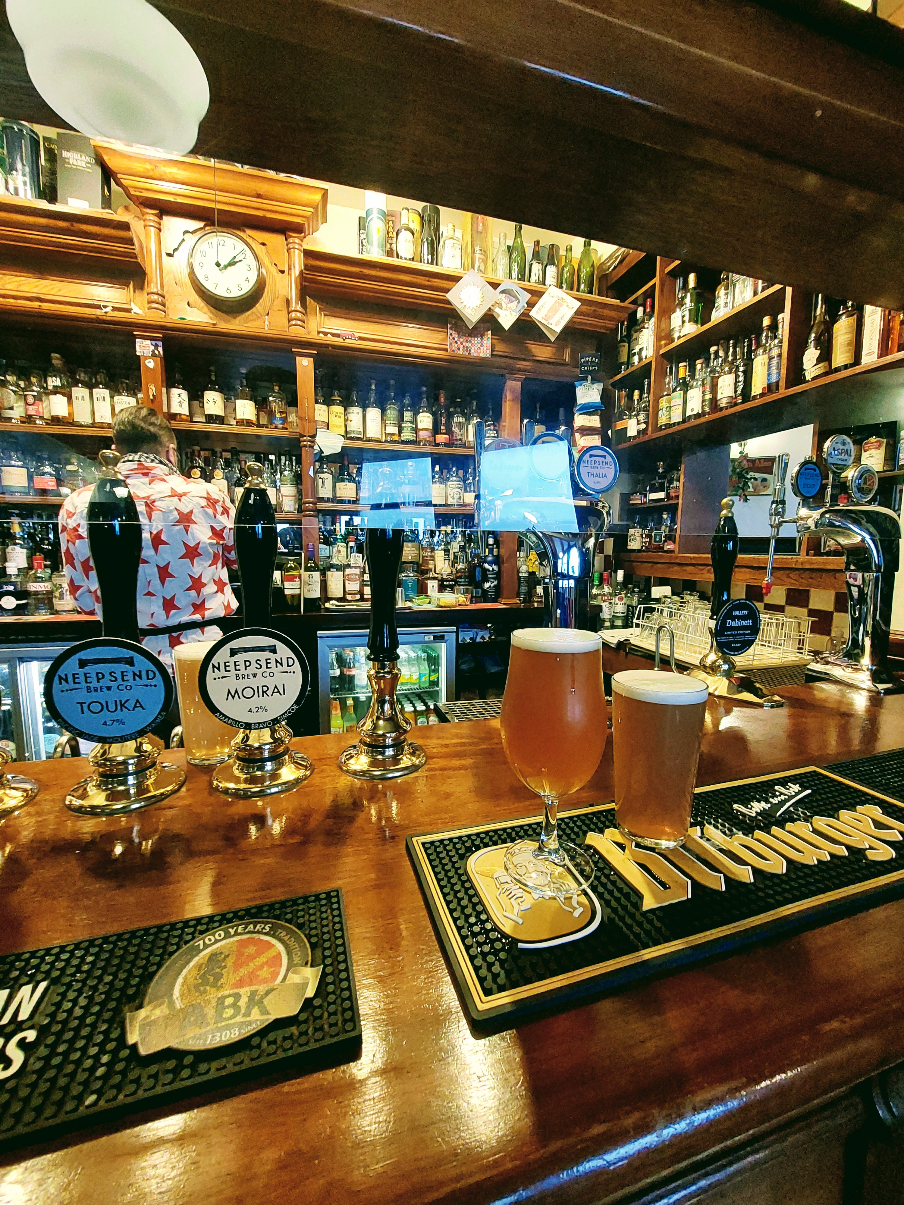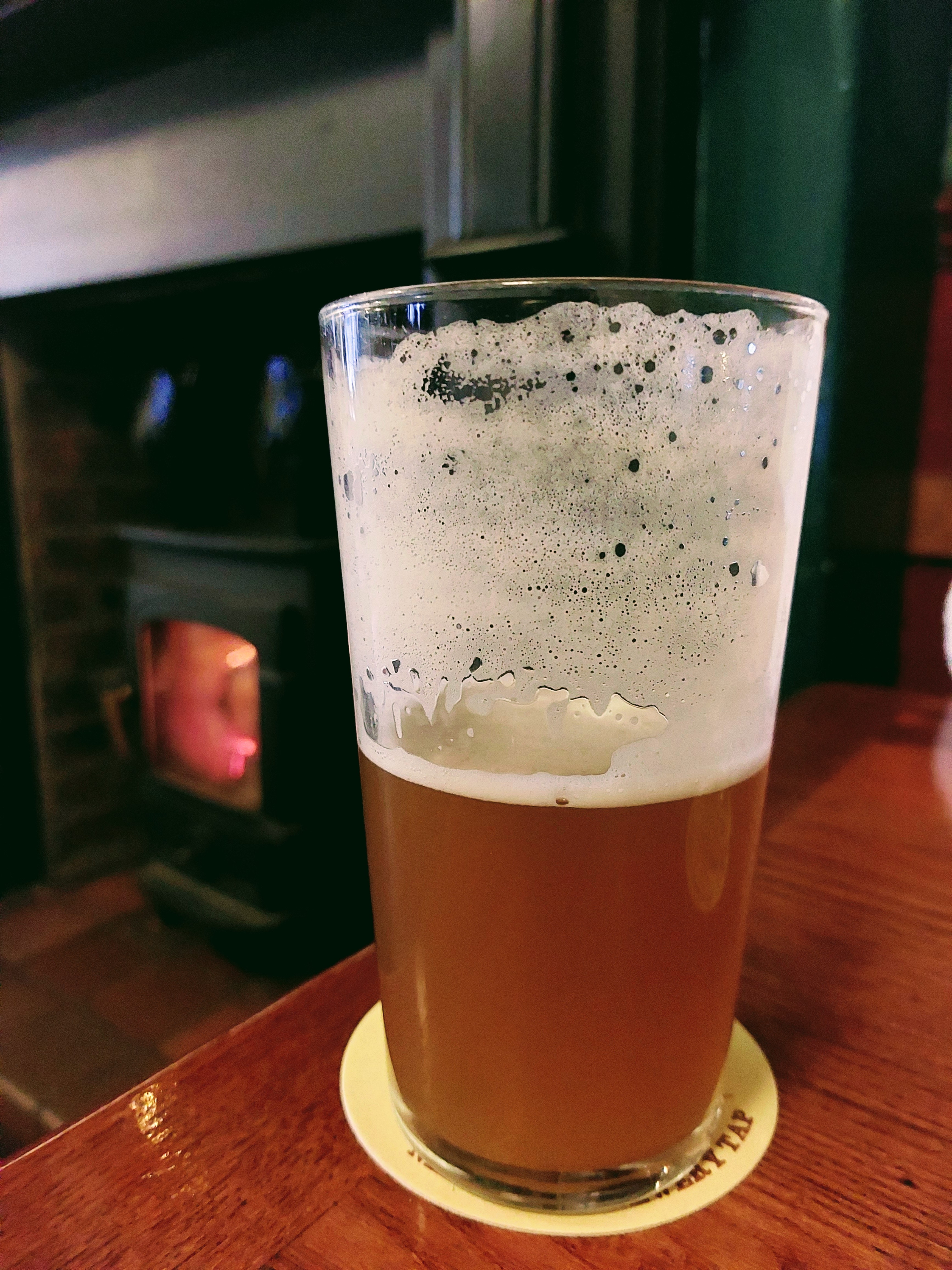 I fetched the beers, a cask, a keg one, a pint of La Trappe Tripel.