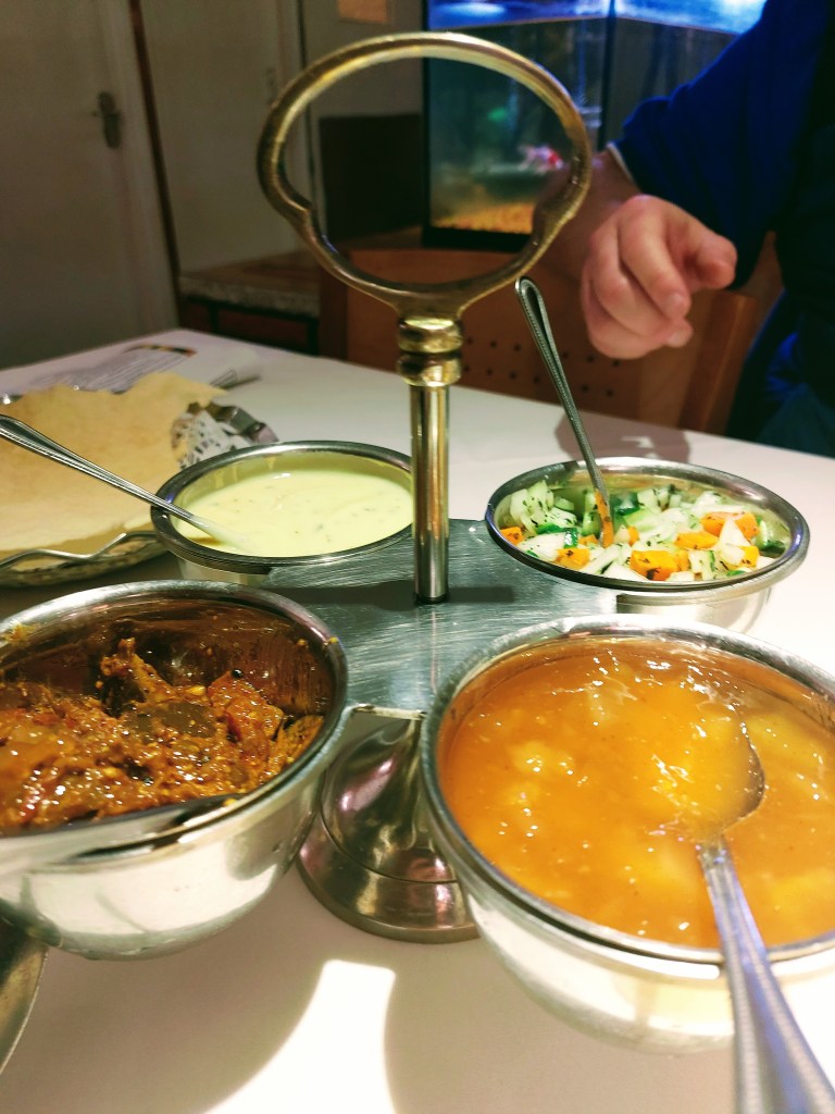 Malt over-ordered, so I had a whole cheese naan and Gurkhali Chicken for breakfast, and Duncan made a fuss about an out-of-date After Dinner mint.