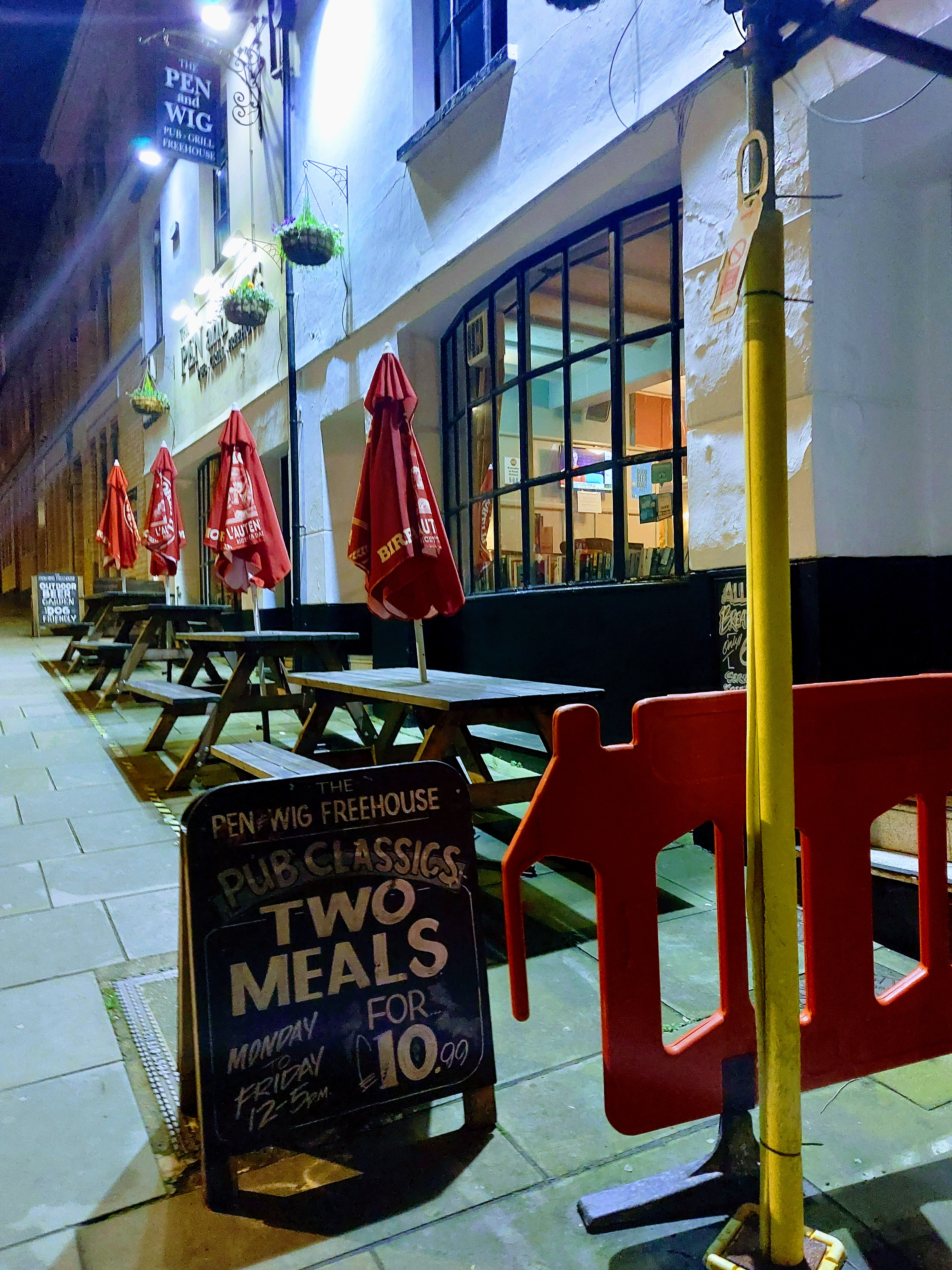 OK, the Pen & Wig isn’t the Coopers Arms, closer to a suburban Derby estate pub I guess, with a very lively crowd and a sweary old lady who the overworked but charming bar staff have to tell thrice to “Mind your language“. It wasn’t that bad, to be fair, compared to Chelmsford.