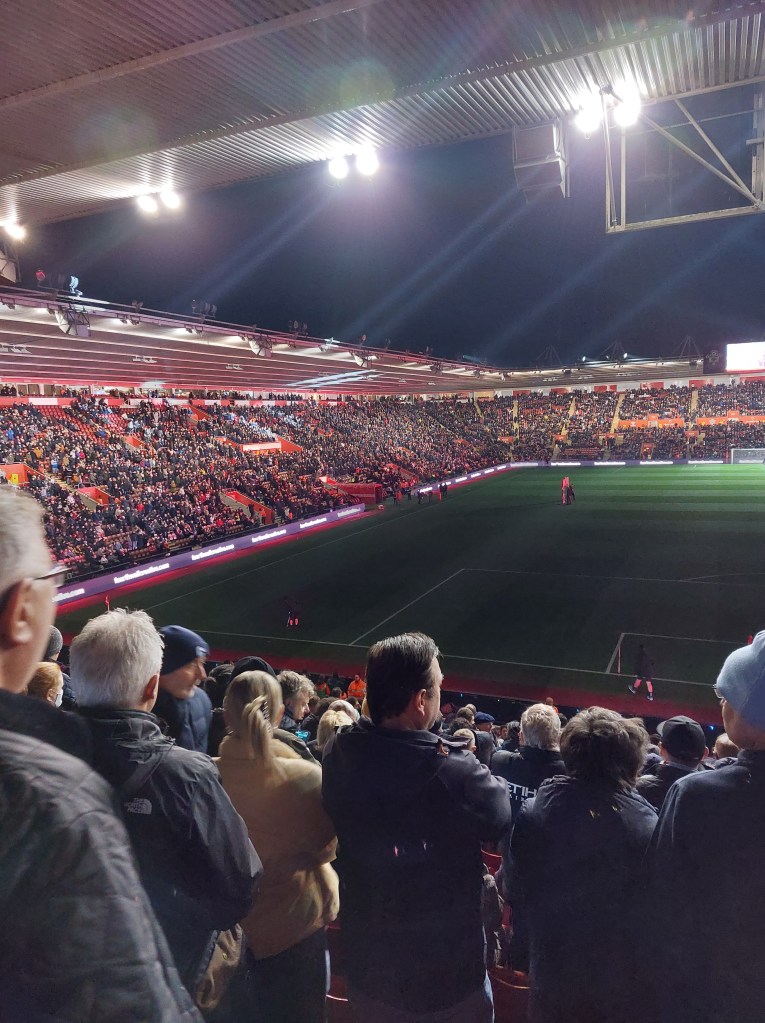 I headed to the ground early to make sure I got the loaded fries (top) from the van outside St Marys, did the Covid pass check that’s been scrapped as soon as it’s introduced, and joined 30,000 folk in the dark wondering if Southampton have ever had a second song (see also : Portsmouth).