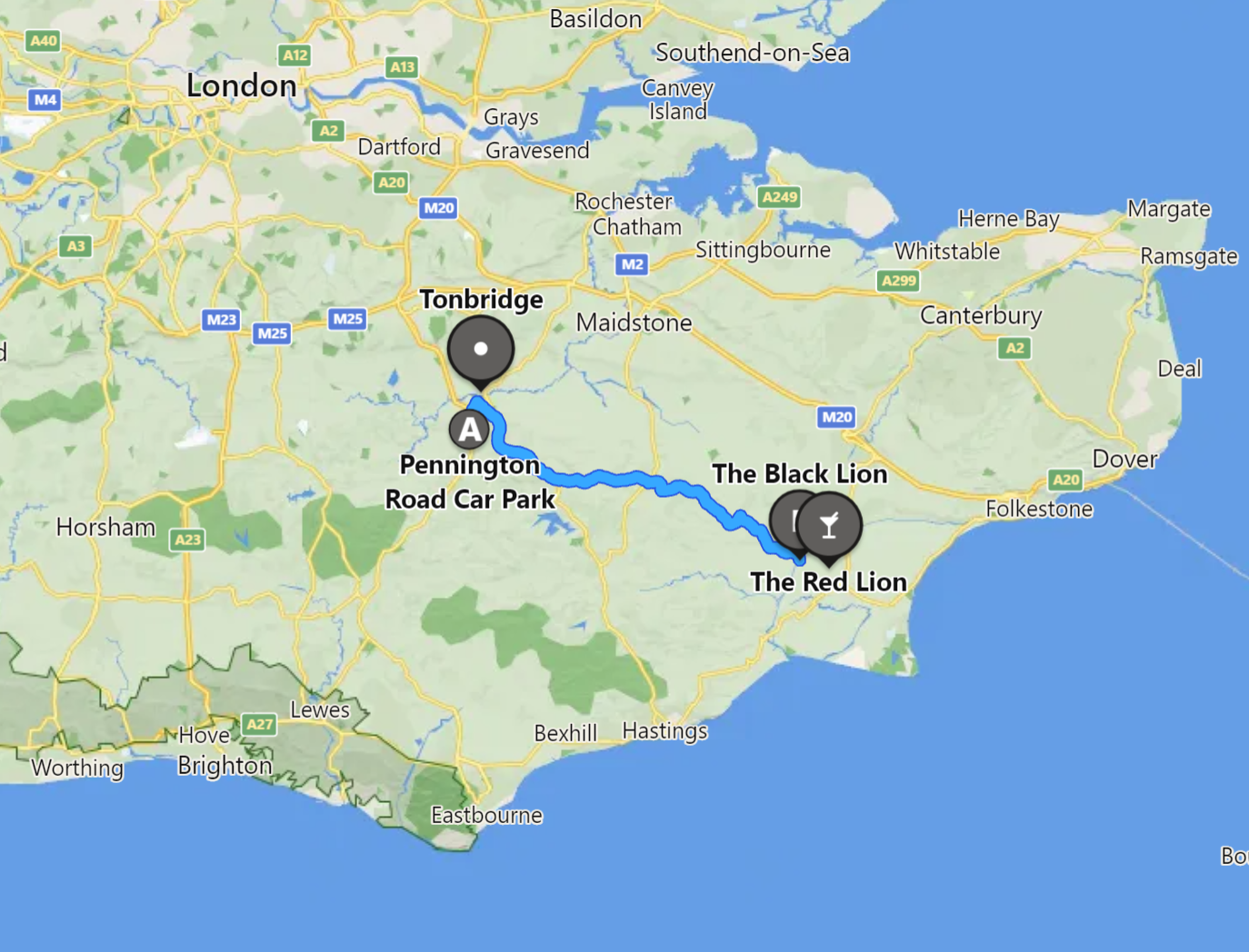 Looking at the map, it doesn’t look any better heading in the opposite direction, which rules out a visit to the Black Lion, as well.