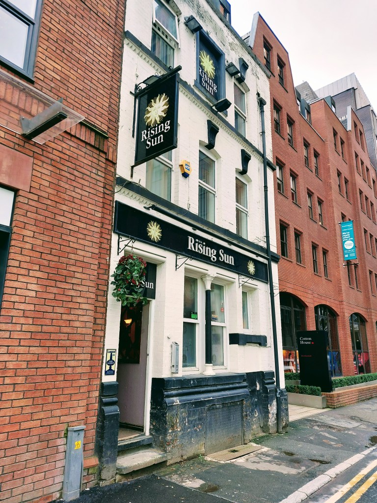 Almost as vital as the street art on the way over the Irwell, where I stopped to show the lads the home of the Mark Addy, one of Manchester’s great lost pubs.