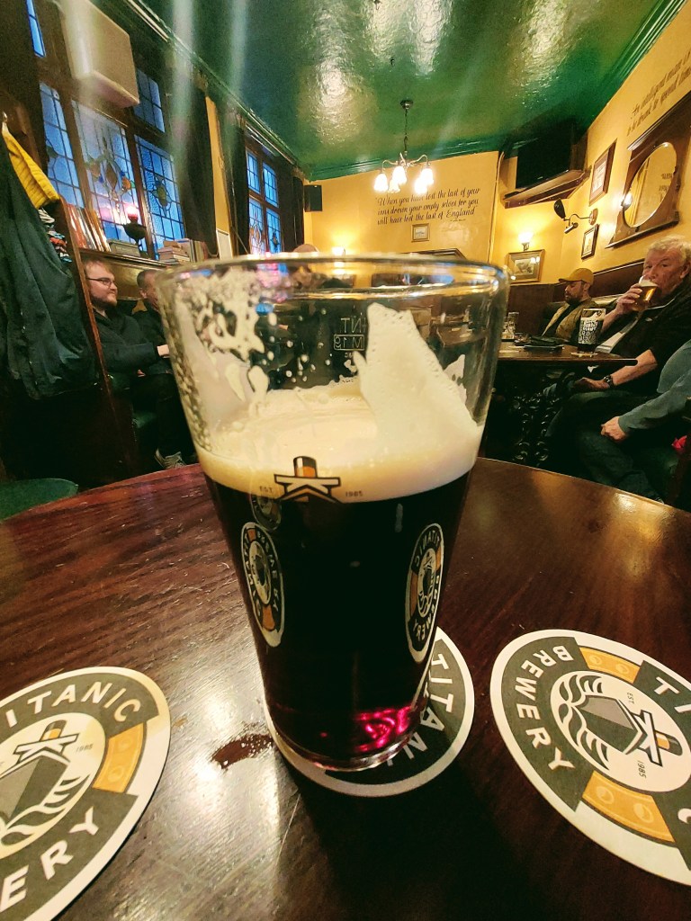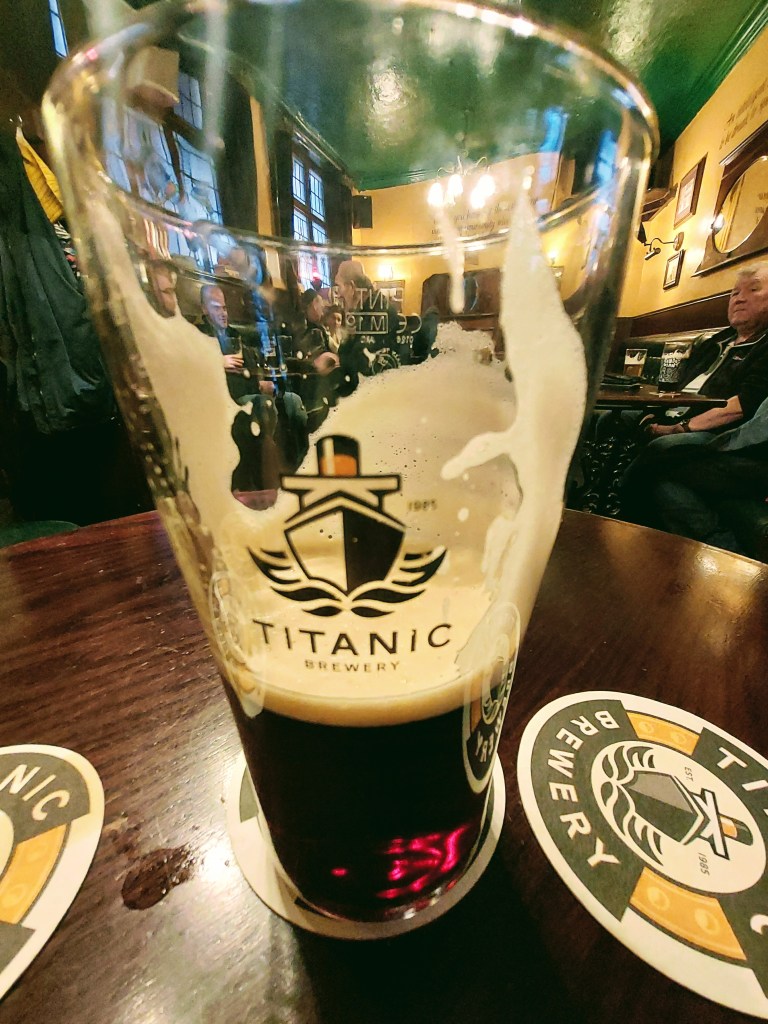 Cool, rich, foamy (NBSS 4). I counted six pints poured while I was there, wondering all the time when the little Titanic boat would emerge on the glass.