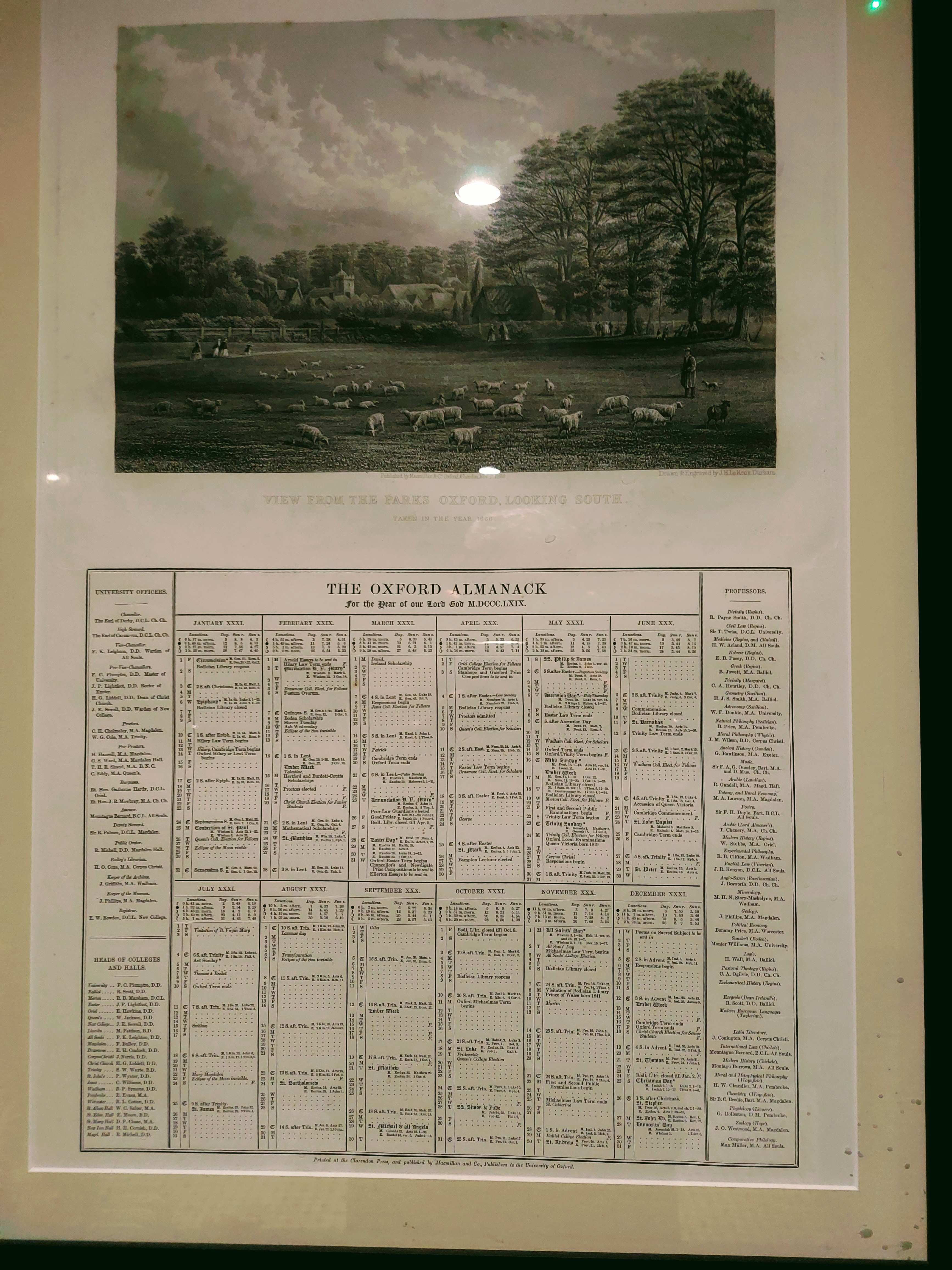 read the Oxford almanac from 1871 in the Gents, and sprinted back.