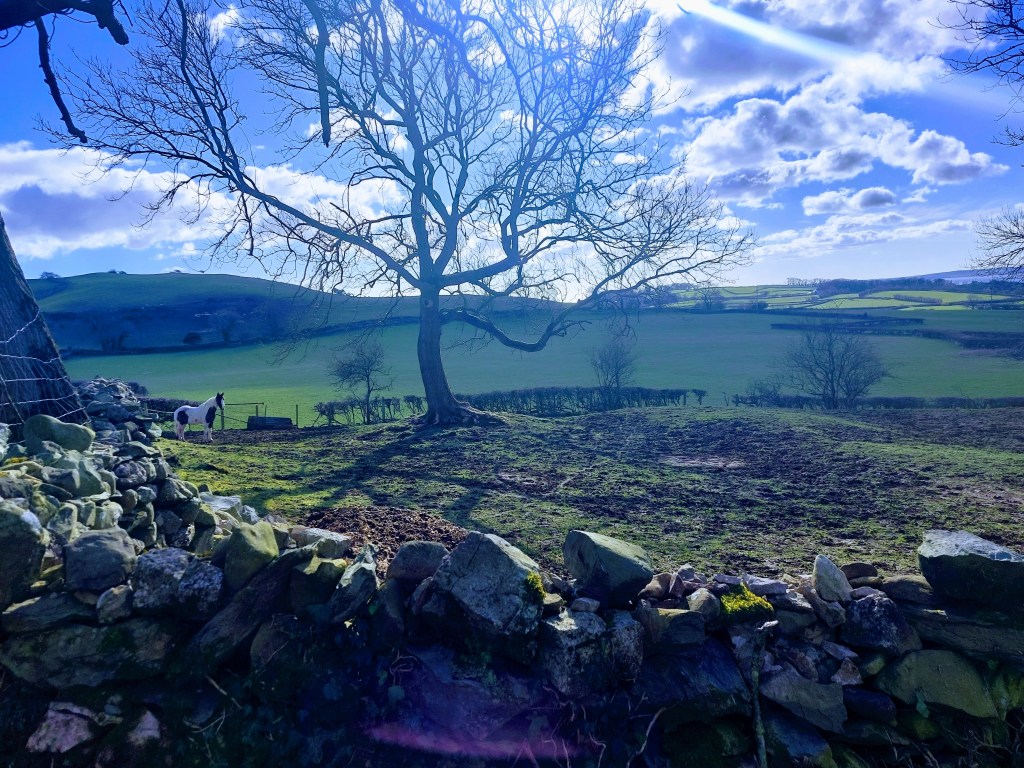 Half an hour walk from Cartmel in glorious sunshine, lacking only a place to take a wee without the attention of runners, golfers and curious horses.