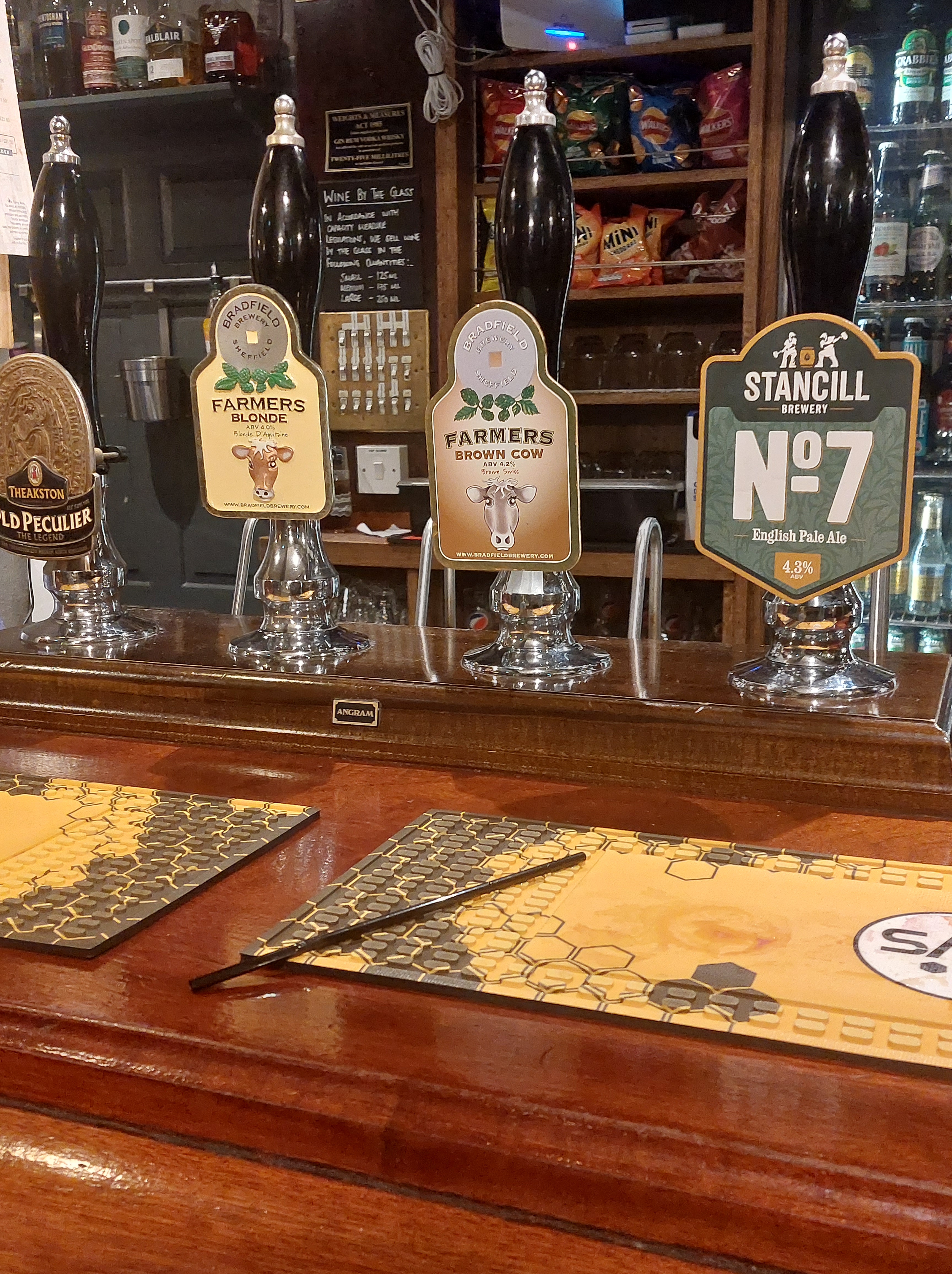 Mrs RM gets the Old Peculier. It’s OK, but lacks body (2.5).