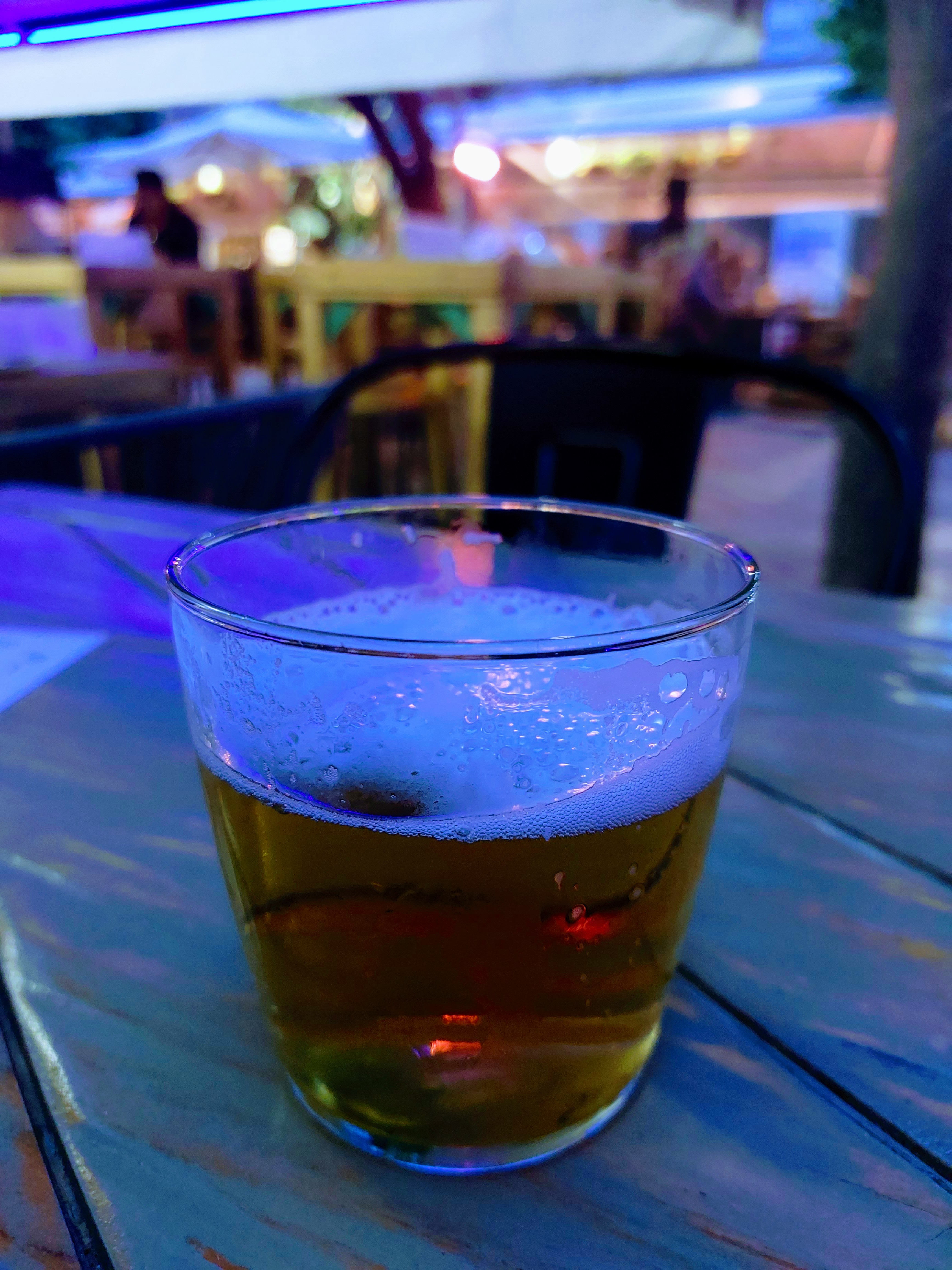 As always in Spain, I have no ideas what “beer” the “beer” is, probably Cruzcampo, but I admire the squat little glass from the Camden playbook (no NBSS available).