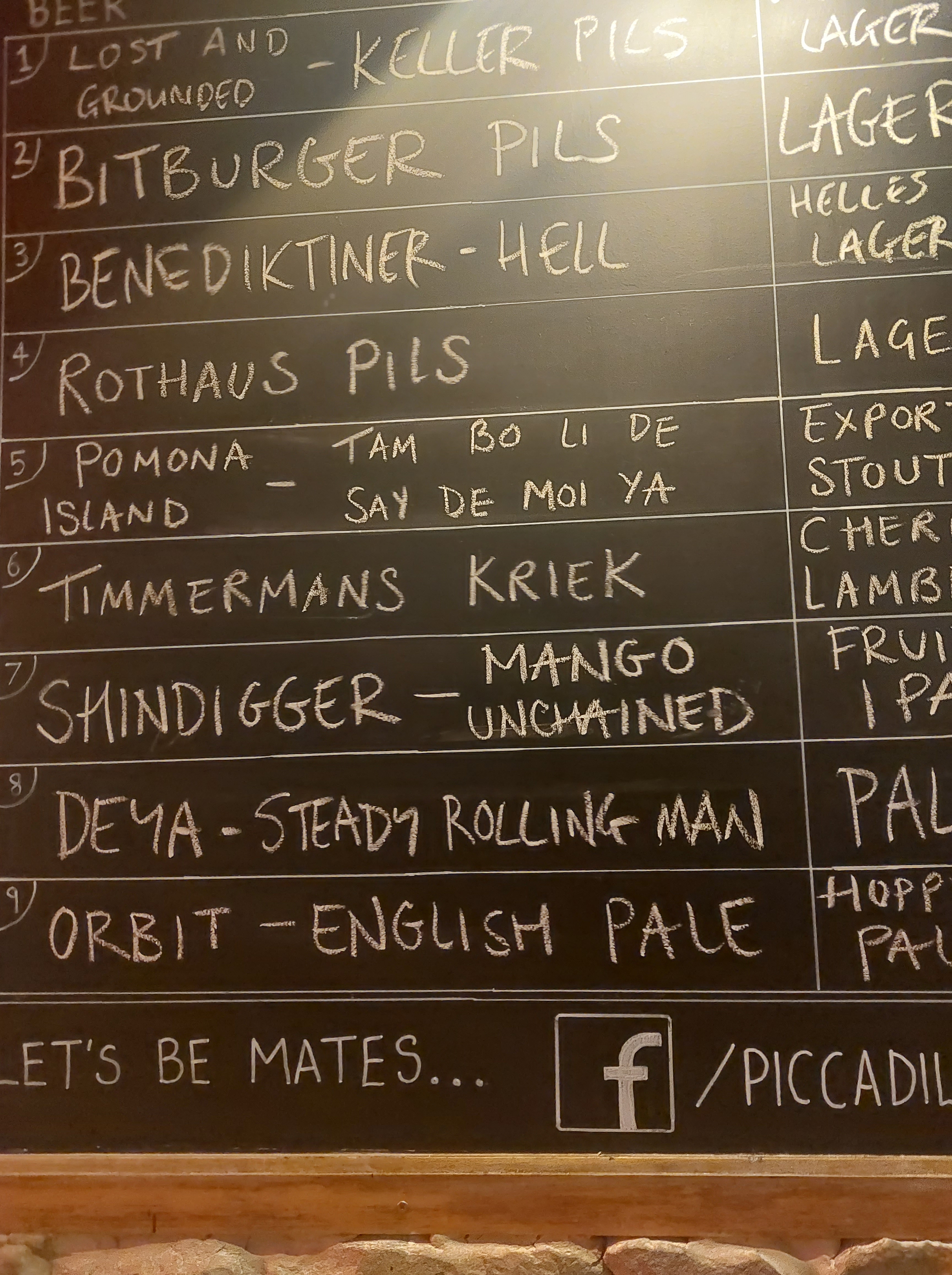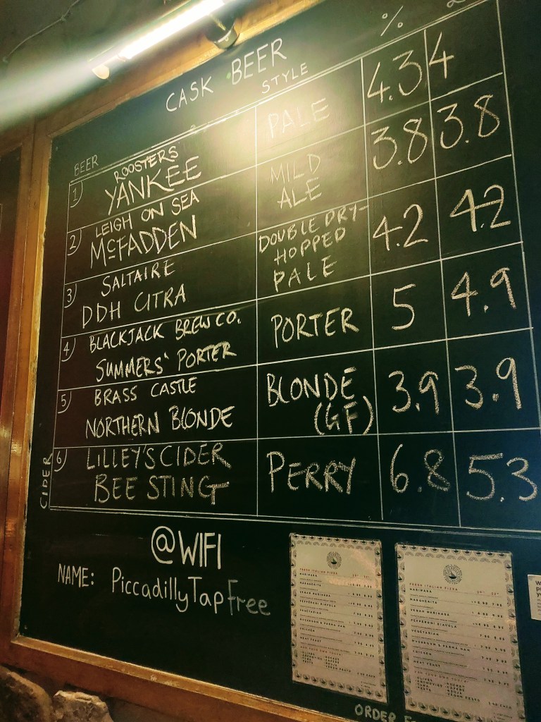 Just enough time to meet Matt, who actually seemed pleased to see us, and get my first pint of cask in 12 days in the Piccadilly Tap.