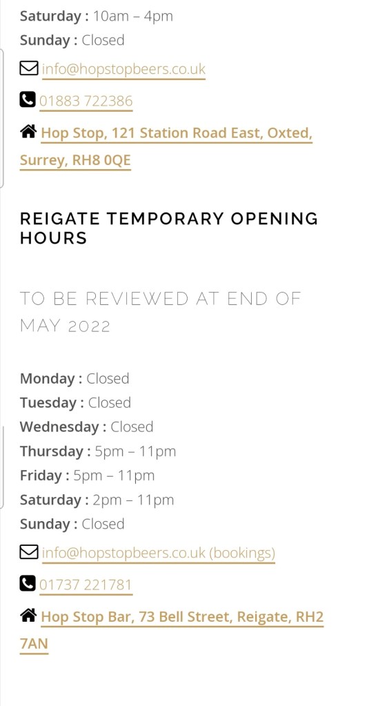 Oh good, a micro bar with “Hop” in the title, with changeable hours.