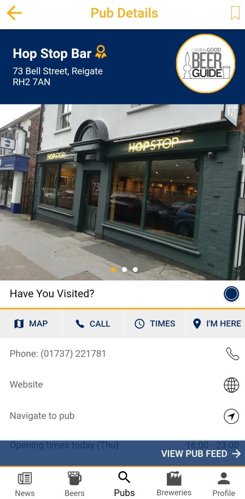 But then again, only CAMRA members have actually heard of Shere Drop (it’s the Crouch Vale Brewers Gold or Jarl of the south), and the Hop Stop isn’t that crafty.