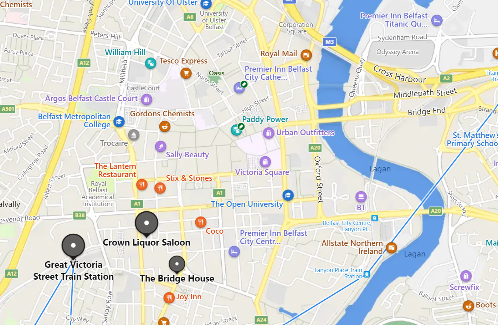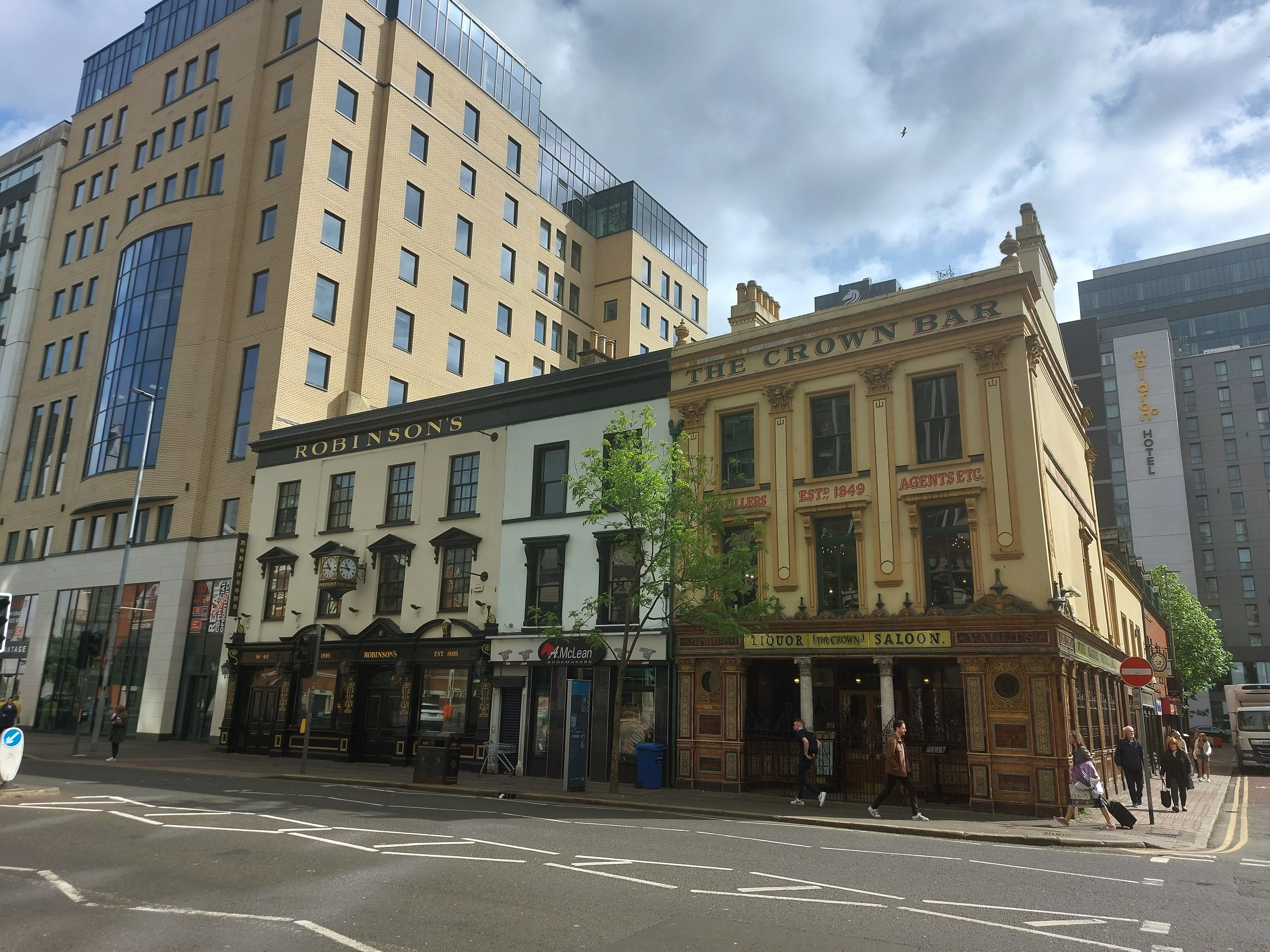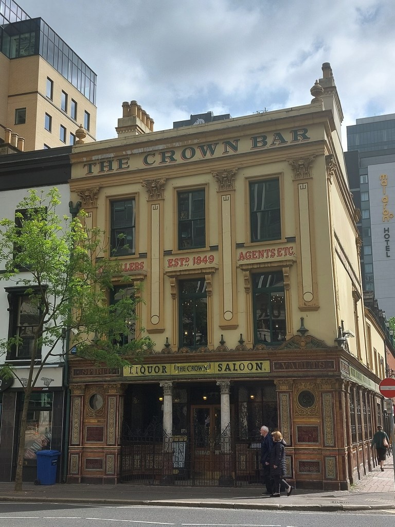 Read a story about the Crown once. Apparently it was originally owned by a couple, the husband was a Nationalist but the wife was a Loyalist who insisted on the name. So the husband had an elaborate mosaic of a crown placed just inside the door where everyone would have to walk all over it. Deserves to be true even if it isn’t.