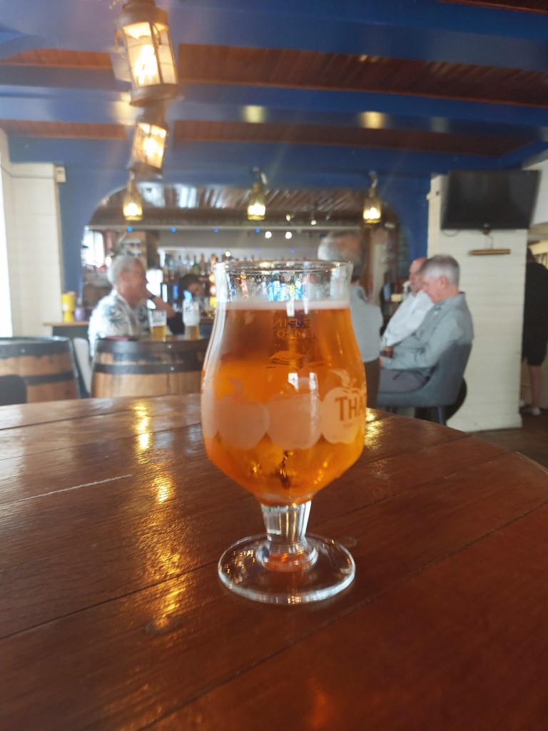 Sorry, only bottles. I don’t do bottles, so I join the locals on a fluorescent orange Thatchers, which calms my stomach (joking).