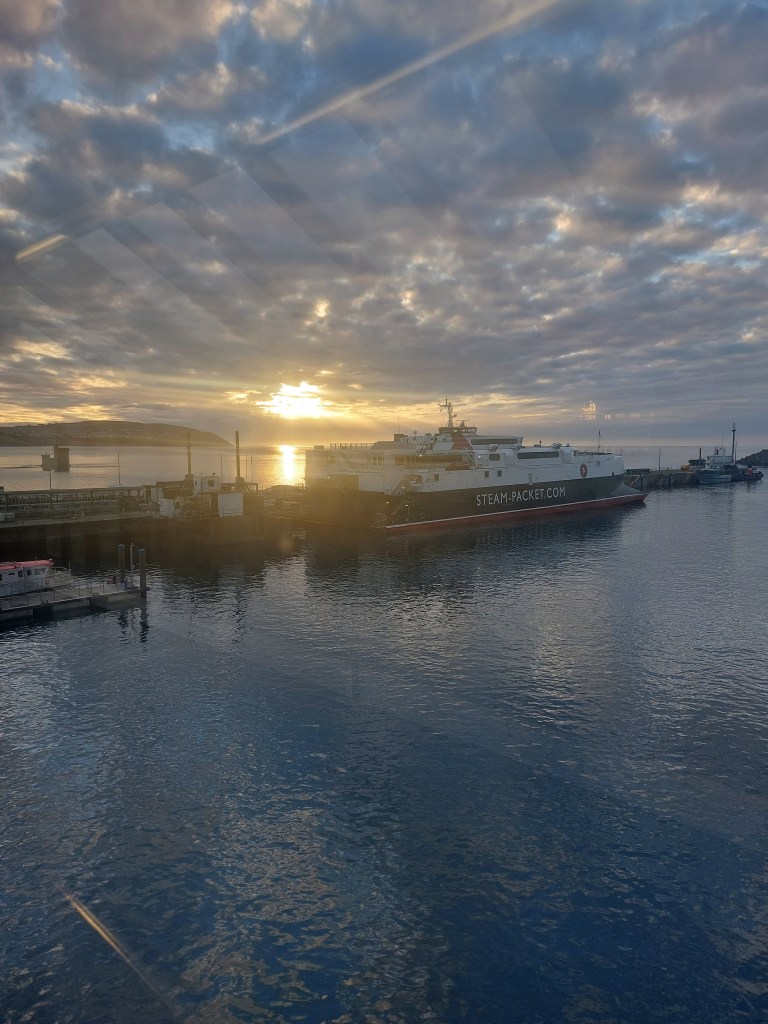 No time for sleep for the ticker attacking the Guide, but plenty of rewards like the reinvigorating sunrise over Douglas harbour at 05:30.