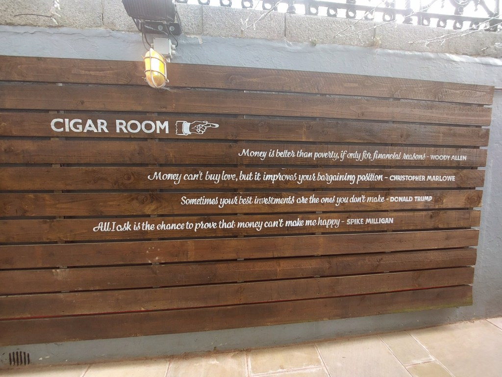 I suggest Simon does this as his sixth pub of the day, so he can fall down the stairs to the cigar room,
