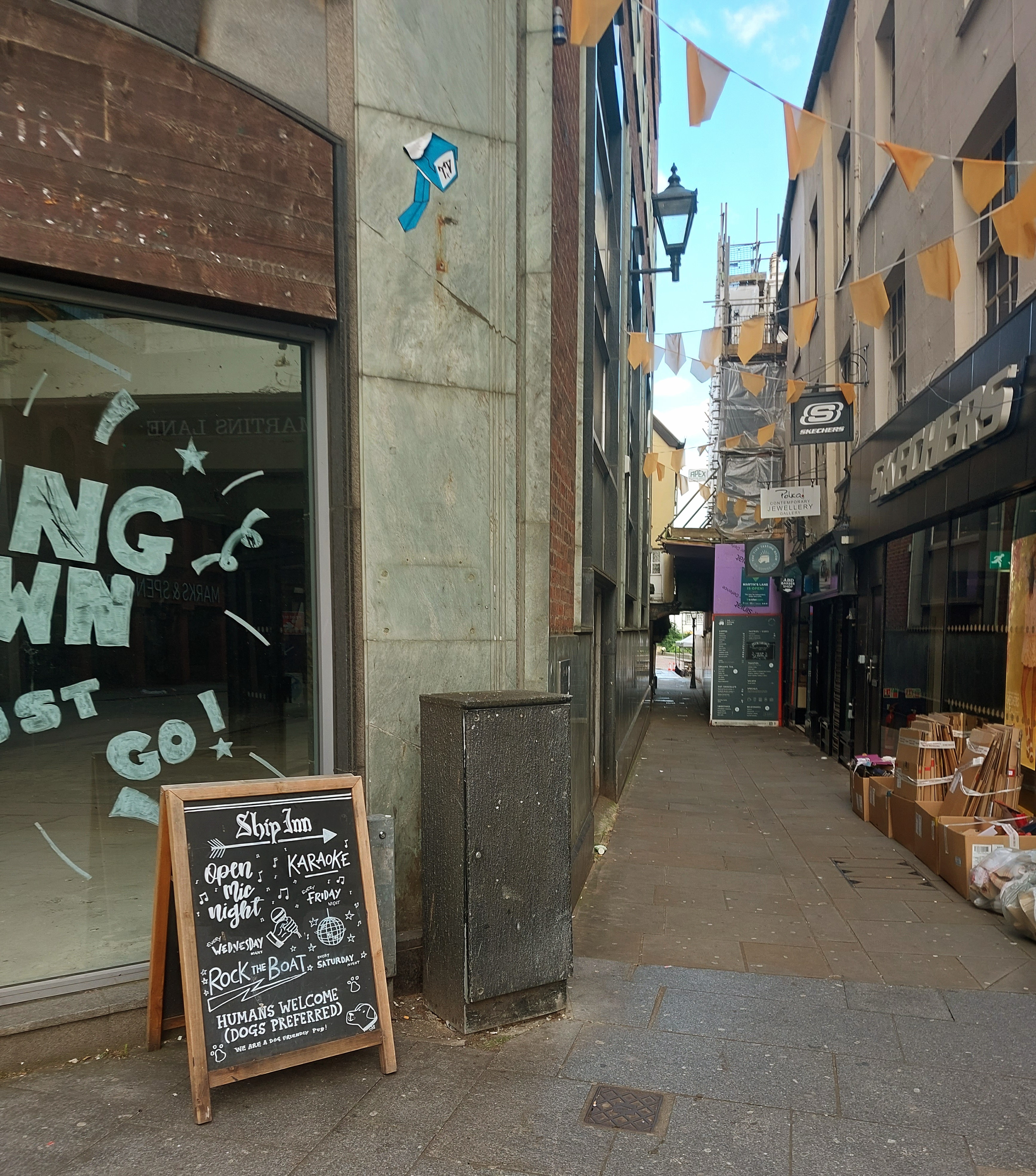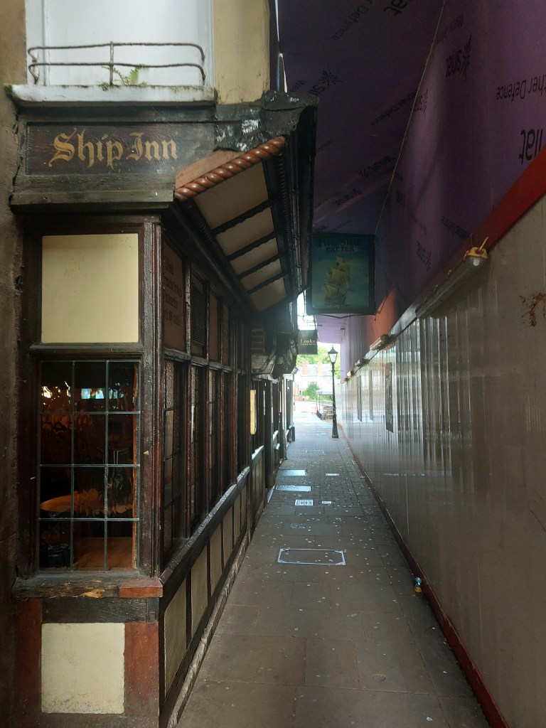 The Ship is down a dark little lane that looks like it’s been borrowed from Newport (Gwent) or Weston-super-Mare; perhaps it has.
