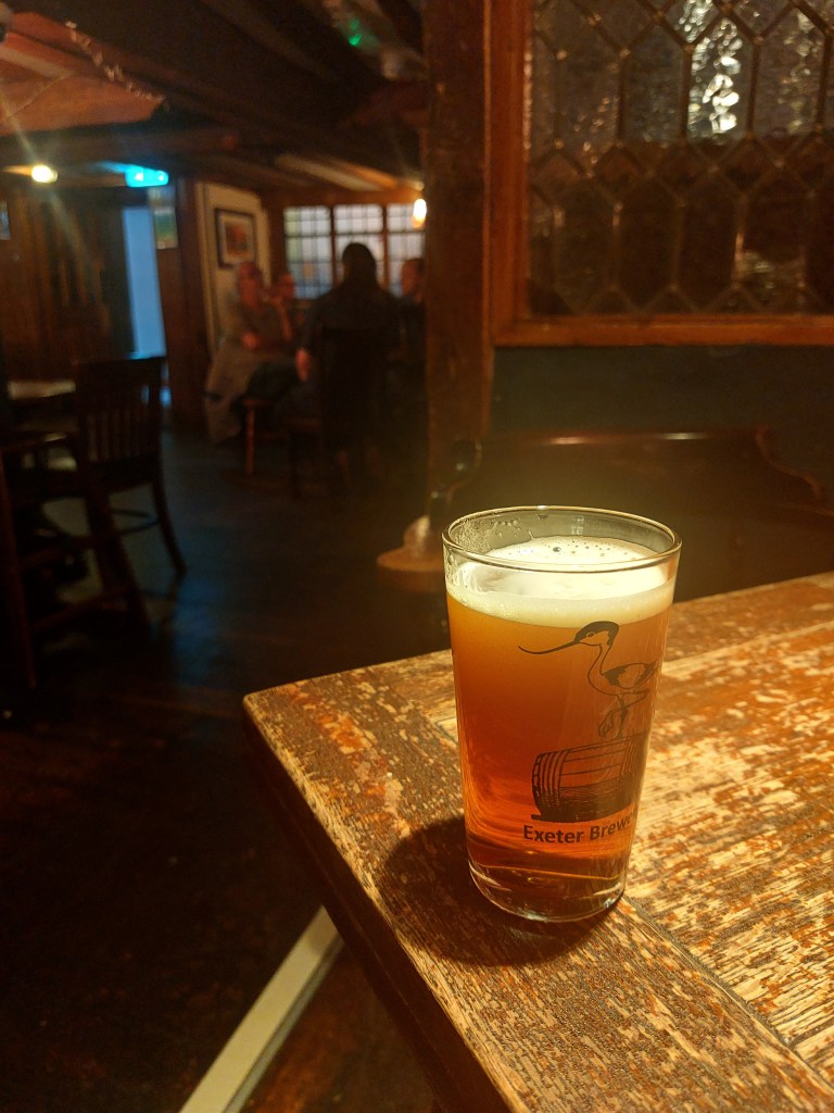 But as the announcements of stops in made-up places called Lympstone Commando (what ?) and Digby & Sowton continued at 2 minute intervals, I realised I’d picked the superslow train and would have 40 minutes at most to walk 2 miles and squeeze in 2 pubs. Believe.