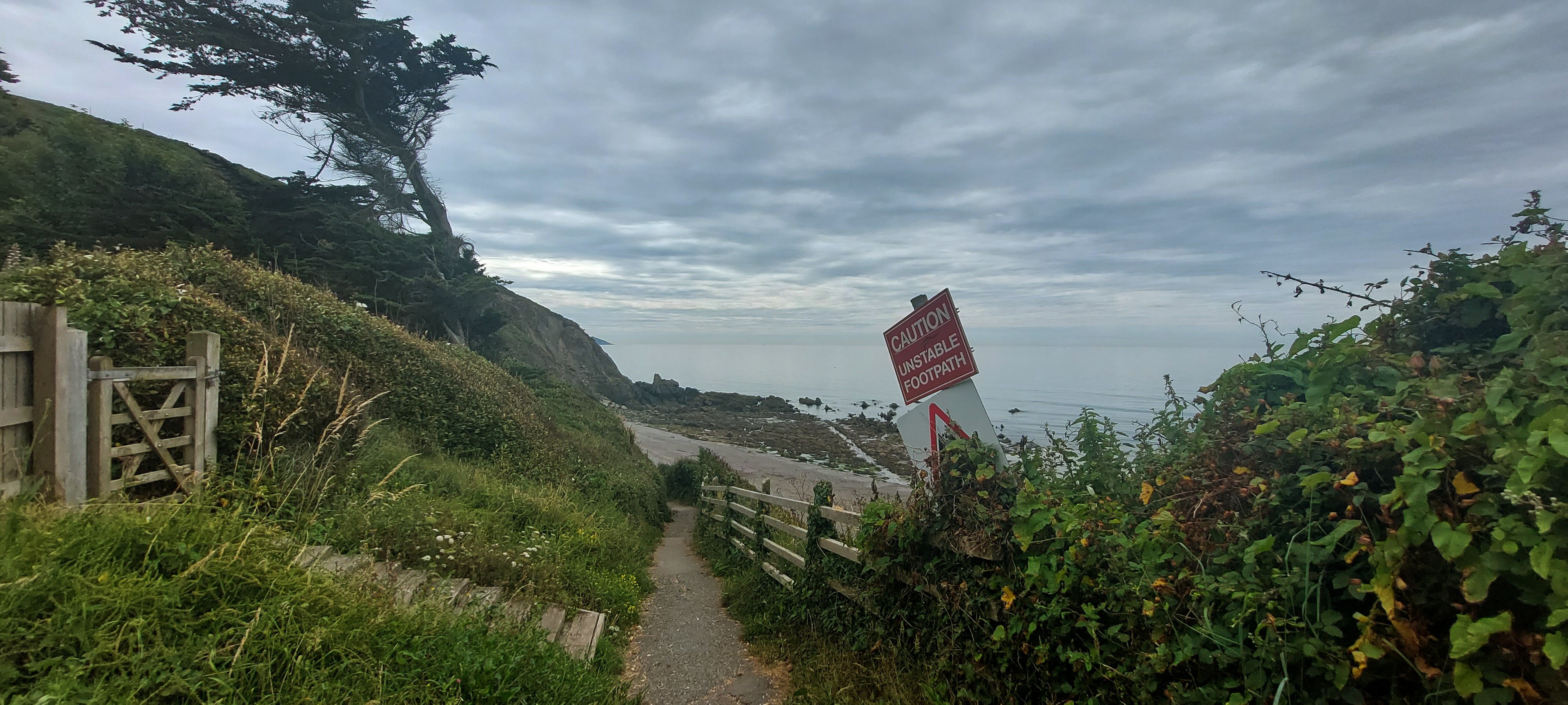 Must get some strong winds down here, judging by the angle on that tree and signpost. An adventurer will ALWAYS head for anywhere which says “CAUTION : UNSTABLE“.