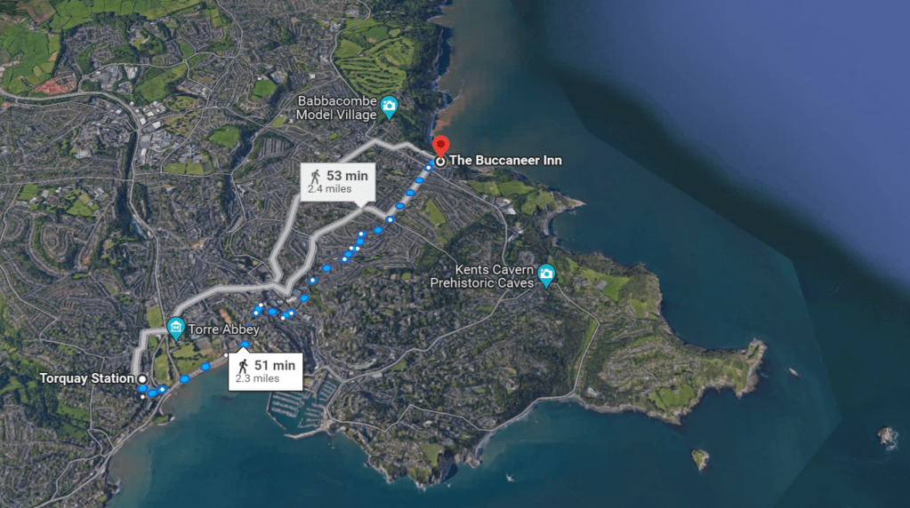 Except the Buccaneer is 2 miles away in Babbacombe Bay (top), which turns out to be quite beautiful in the sun that followed me around throughout July.