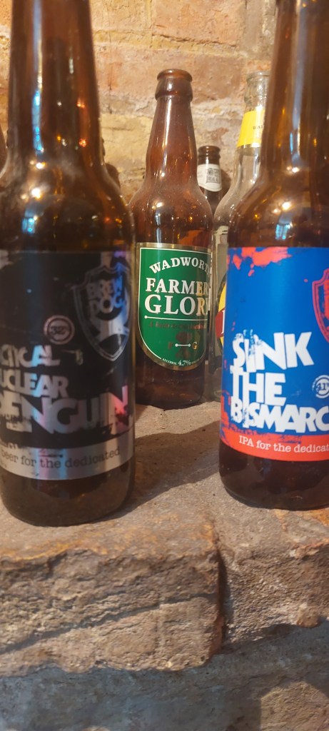“Pineapple ! I like my beer to taste of beer !” says Mrs RM, so Black Sheep and the “Customer Favourite” it is, then. I’m a sucker for “Staff recommendation”, “Best Seller” and “Customer Favourite”, because I’m a sucker.