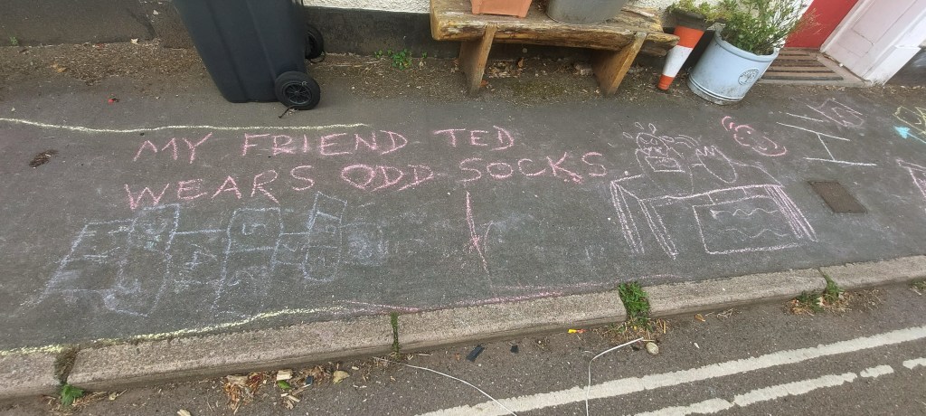 I was looking for more personal history, and found it in pink chalk on the pavement;