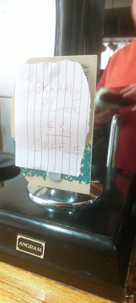 1. According to Caffle Brewery’s website, Skaddly Pluck is a Pembrokeshire term for “a chicken scramble to eat corn thrown on the ground”. Well, indeed – what else could it have been. A proper pump clip with an illustration of a skaddly pluck would be an improvement on the page ripped out of a notebook, in my humble opinion.