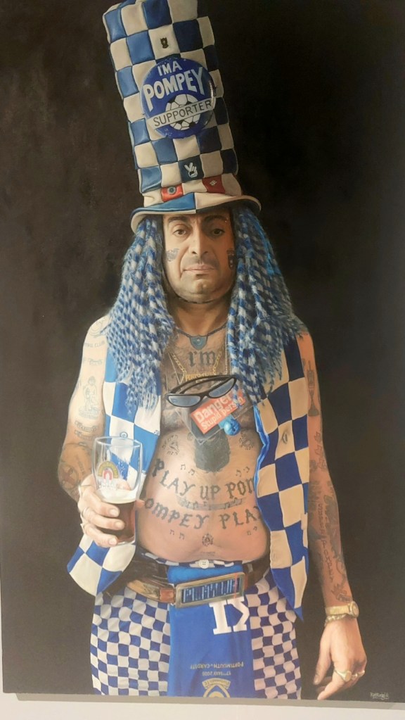 My photo is of Pompey John, the very embodiment of “Proper” football with his pint of no nonsense John Smiths Smooth, from an exhibition in Sheffield’s superb and revitalised Millennium Galleries.