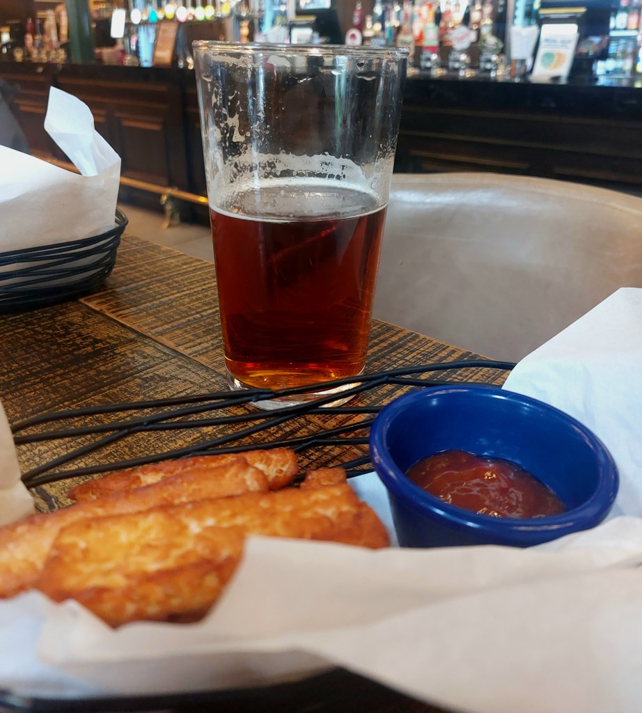 Strictly in the interests of research I had a half of Doom Bar, the nation’s favourite (NBSS 3+) to accompany my halloumi fries, and will receive my Beer Sommelier ale and food matching certificate soon.