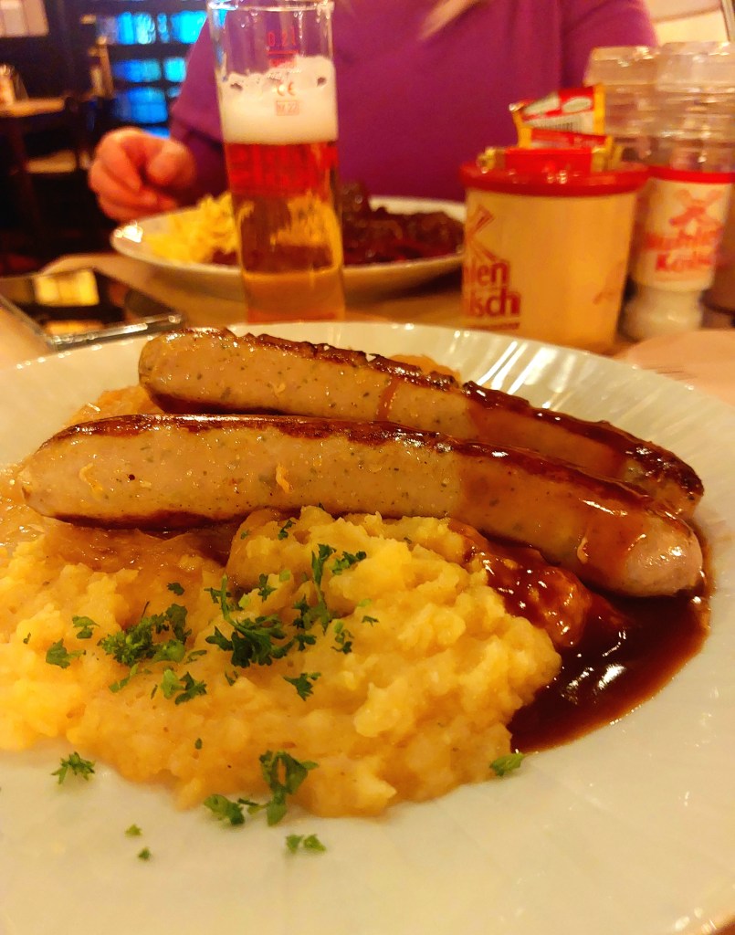 It’s still fascinating to watch EVERYONE in Germany drink beer (apart from Americans who want water and then complain on Trip Advisor). By the time our sausages arrived there must have been 30 gentlefolk (nearly all couples) in, ALL with a beer in front of them.