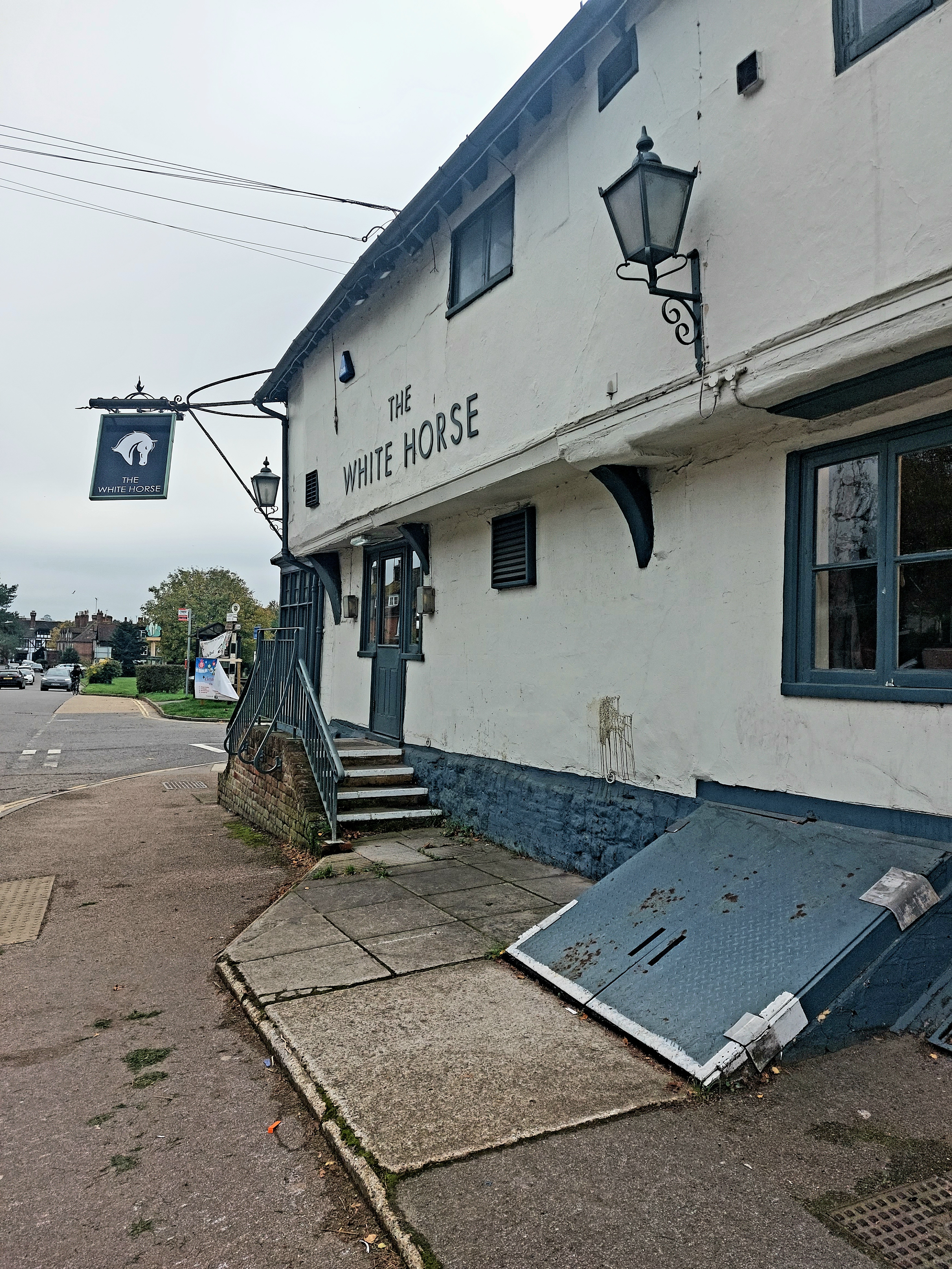 Overlooking the attractive green, the White Horse looked dreadful, in a faux Brunning & Price way. AND we had to book.
