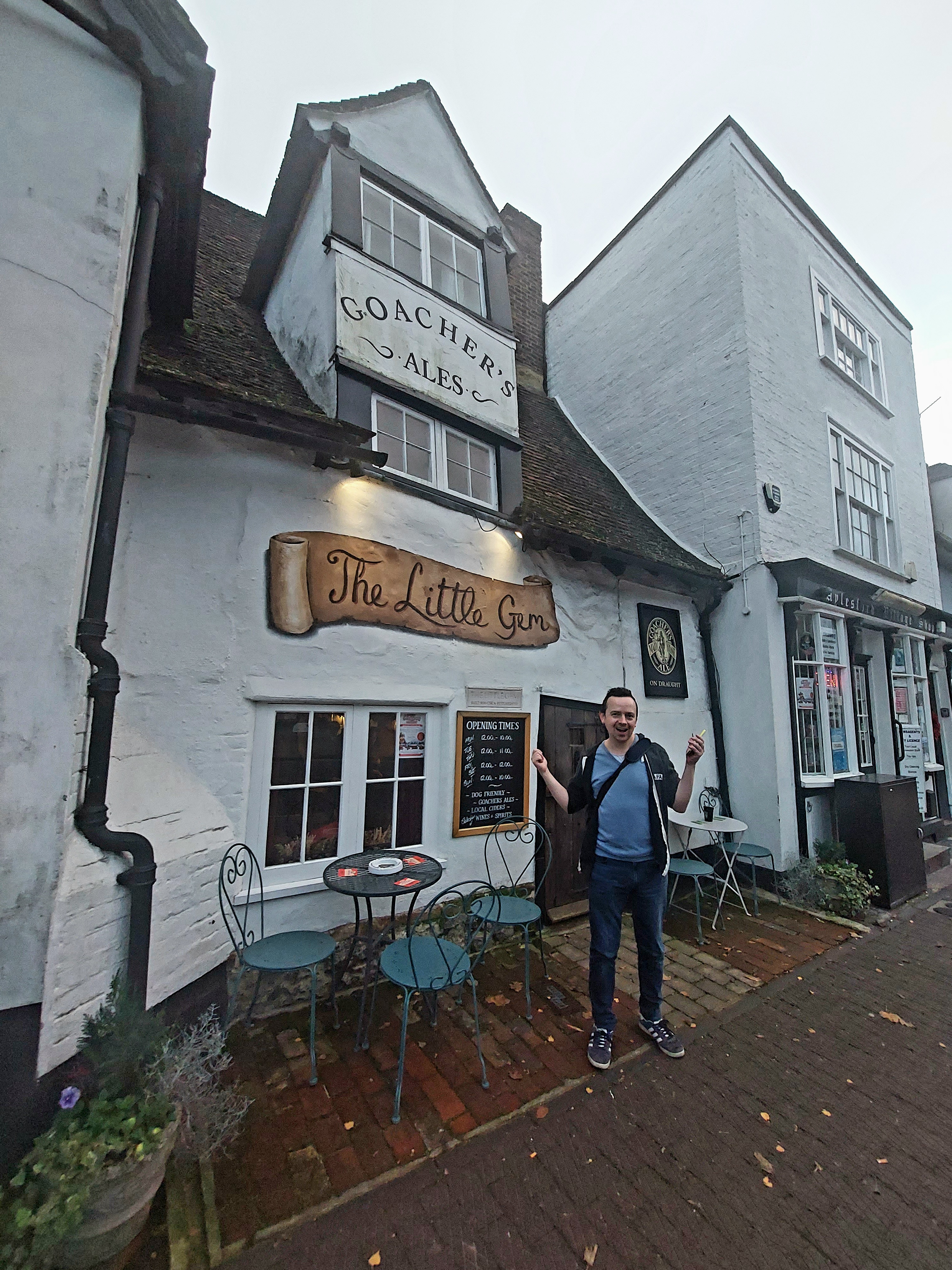 In truth Simon was only expecting a lift to a couple of pubs, but we were enjoying fondling Colin the Cauliflower going to pass two more on the way back to Rye, so let’s stop at Rymarsh, shall we.