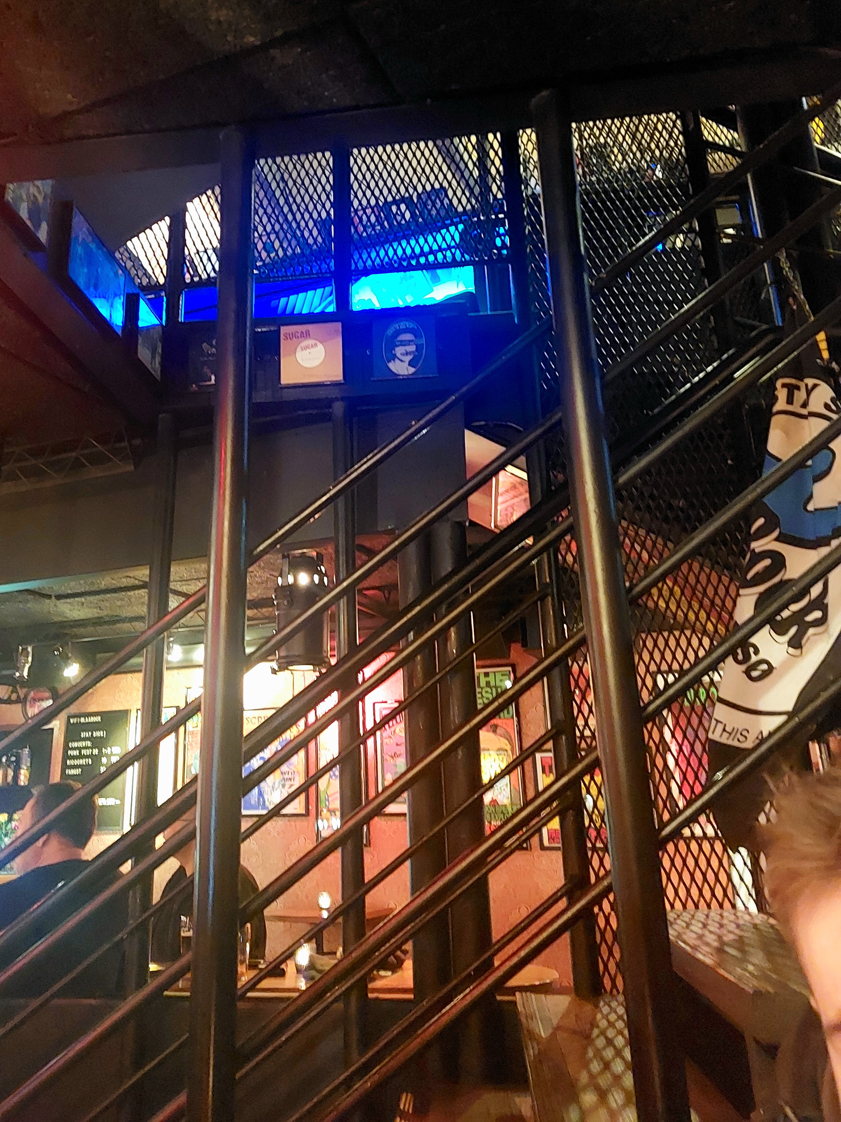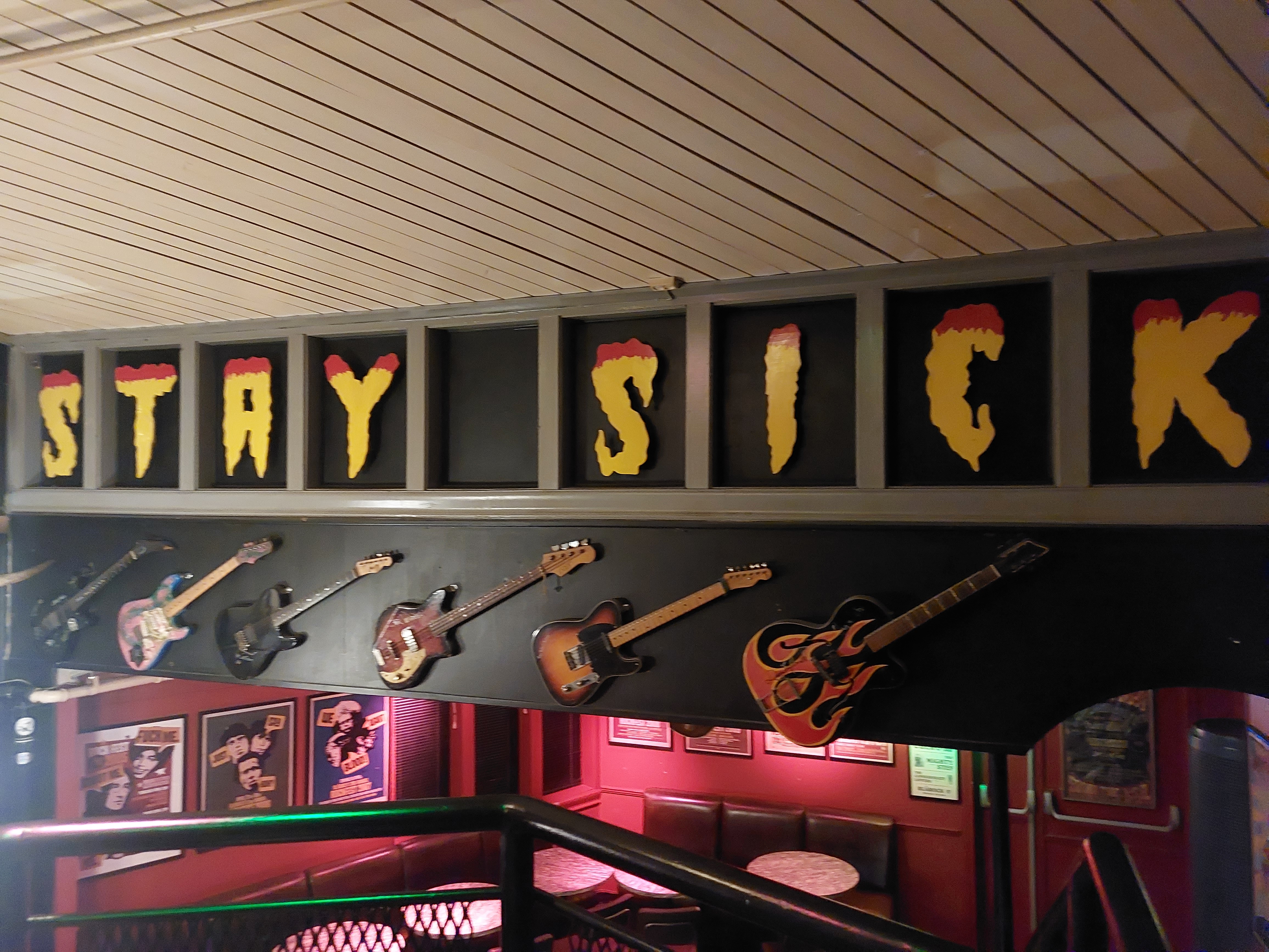 Live music here, seemingly on about four levels dotted with UK punk singles.