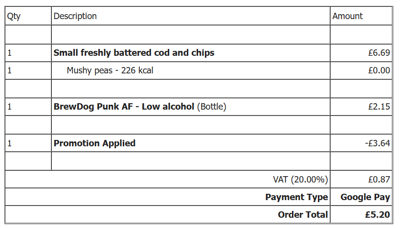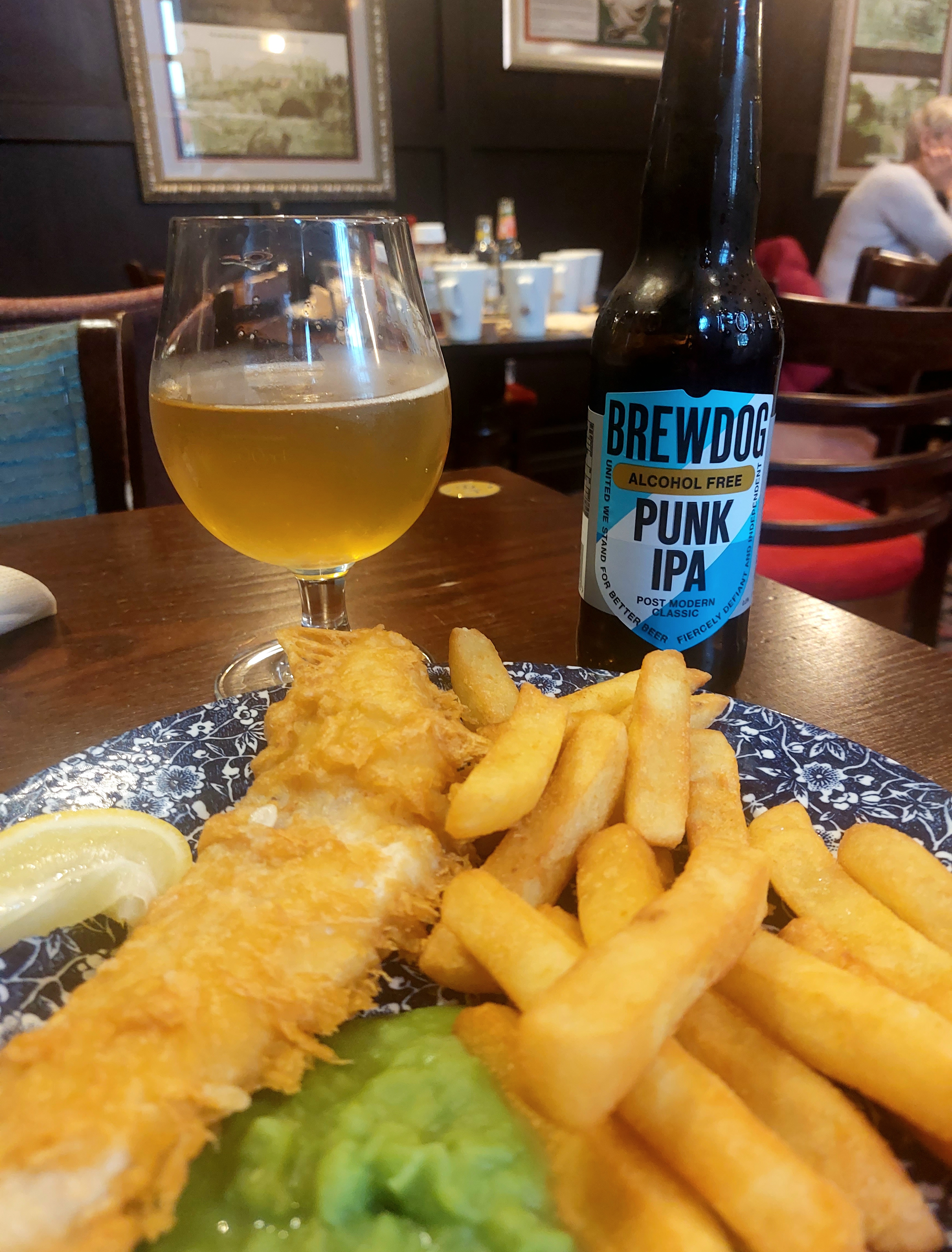 Yes, just over a fiver for fish, chips, mushy peas and a beer in a pleasant setting. Well, sort of beer. And, well, a pleasant enough setting once the hardworking staff had cleared the tables opposite.