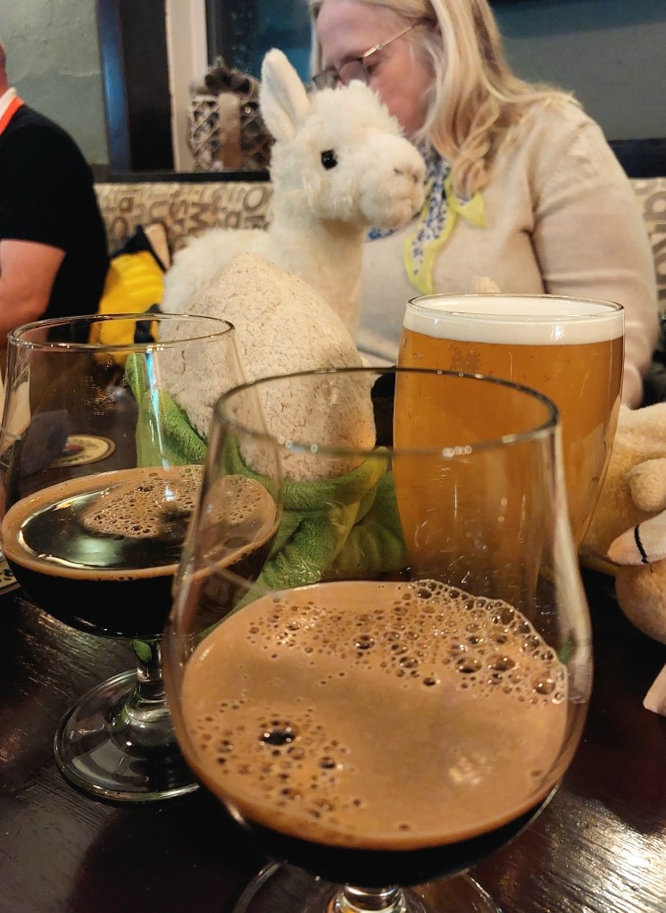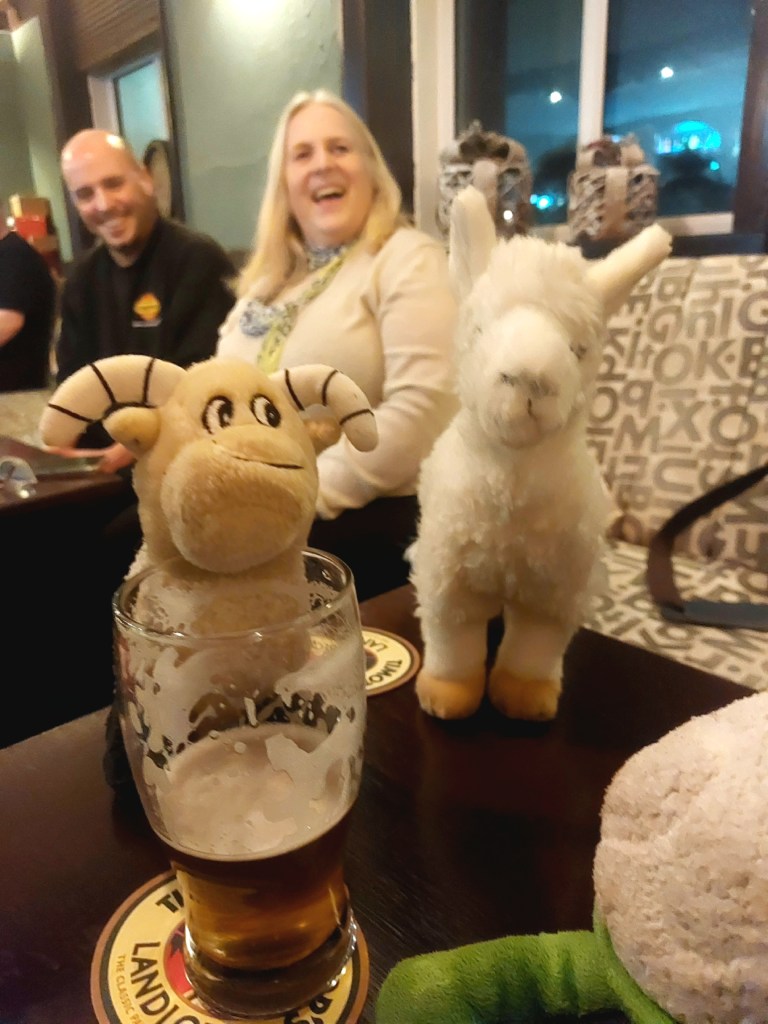 Possibly THE iconic pub photo of 2022. Baa Baa Toure, Alfie the Alpaca and Colin the Cauliflower fighting over a pint of Abbeydale’s “Through The Hophead Galaxy” in Chesterfield’s Anchor, cheered on by Mrs RM and Eddie, who had finally removd his Hi-Vis jacket.