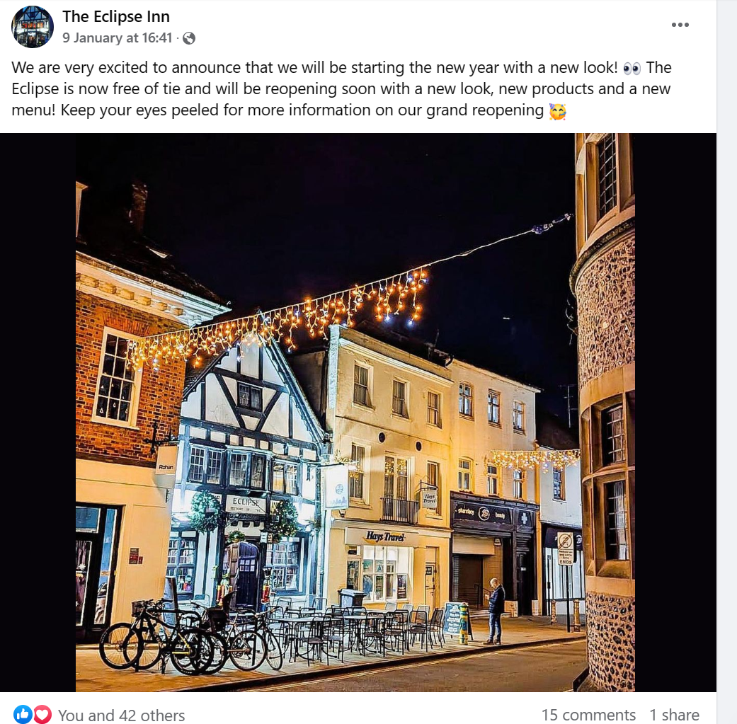 Loads of photo opportunities in the Eclipse; oak beams, folk nights, Doom Bar….