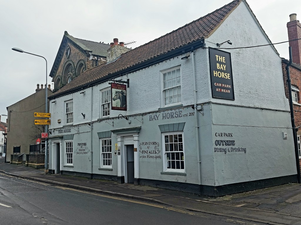 He stands facing the Bay Horse, a pleasingly plain town pub in a plain town. I wondered what Simon had made of it, but found only this visit to a micropub that failed to trouble the GBG scorers.