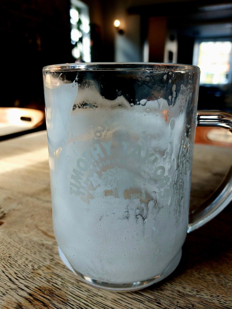 and, despite a horrific handled glass, a pretty good pint, cool and foamy (NBSS 3+) that passed the Tim Taylor Test.