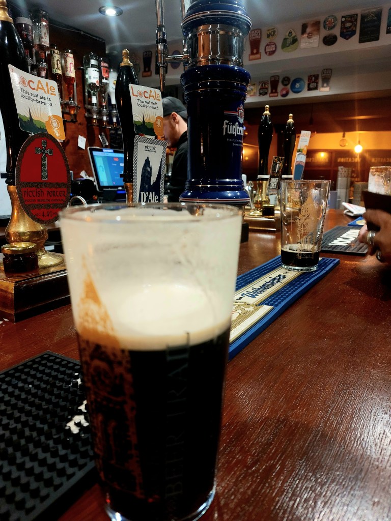 I was about to take a sip of his pint when he got the barman to give me a little taster cup. I took a sip; I can only apologise.