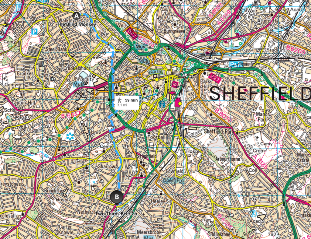 Of course, most pub tickers aren’t average walkers, and it only took me a leisurely 41 minutes to make it, even taking in the scenic wonders of west Sheffield.