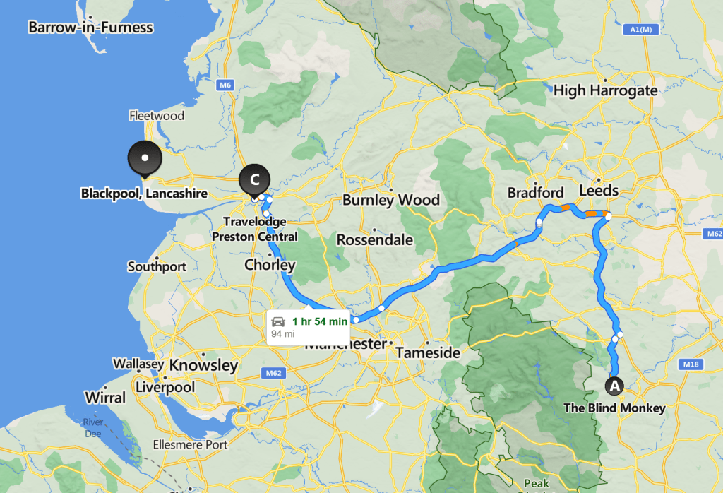 I probably should have sort Blackpool Jane‘s permission to visit her home town, but I’d picked Preston (aka Blackpool East) for my overnight Travelodge, which for fans of the Tangerines is rather akin to staying in a contaminated zone.