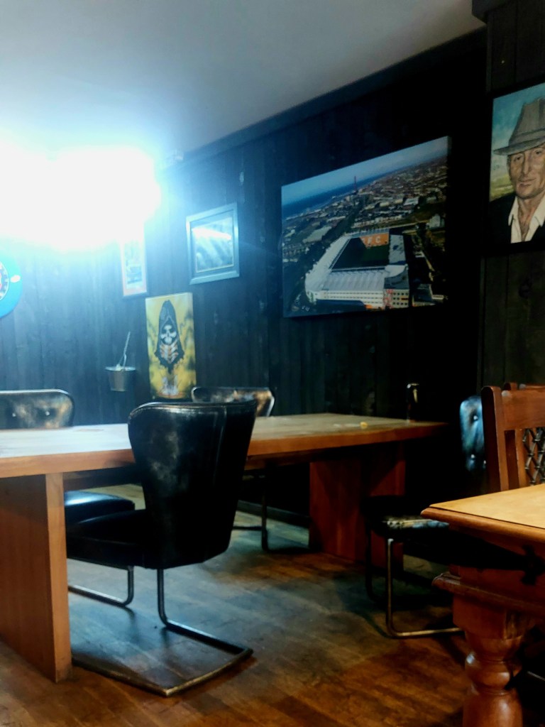 Half a dozen Blackpool fans pre-match, half a dozen professional drinkers (the noblest profession), half a dozen choices of seating.